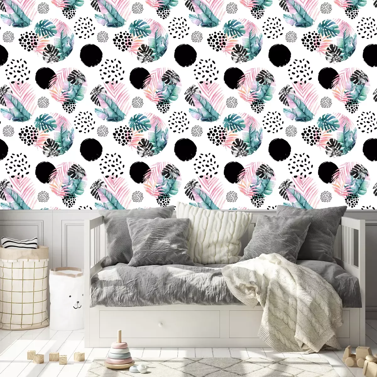 Farbenfrohes Muster mit PalmenTapete