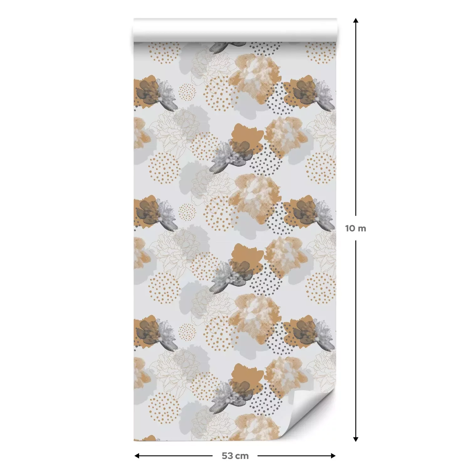 Eine Standard-Tapetenrolle hat die Maße 0,53 m x 10 m und deckt eine Wandfläche von etwa 5 m² ab.