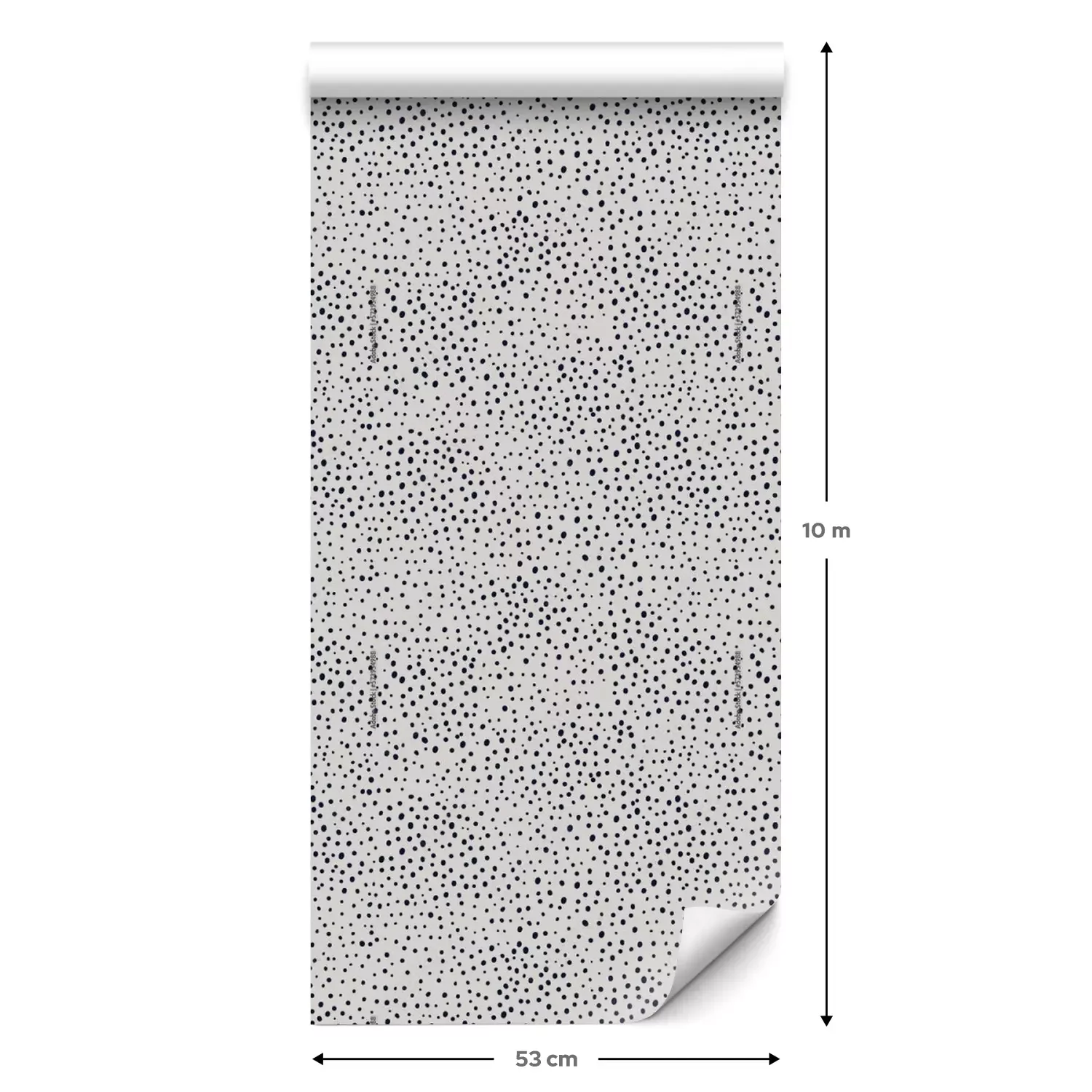 Eine Standard-Tapetenrolle hat die Maße 0,53 m x 10 m und deckt eine Wandfläche von etwa 5 m² ab.