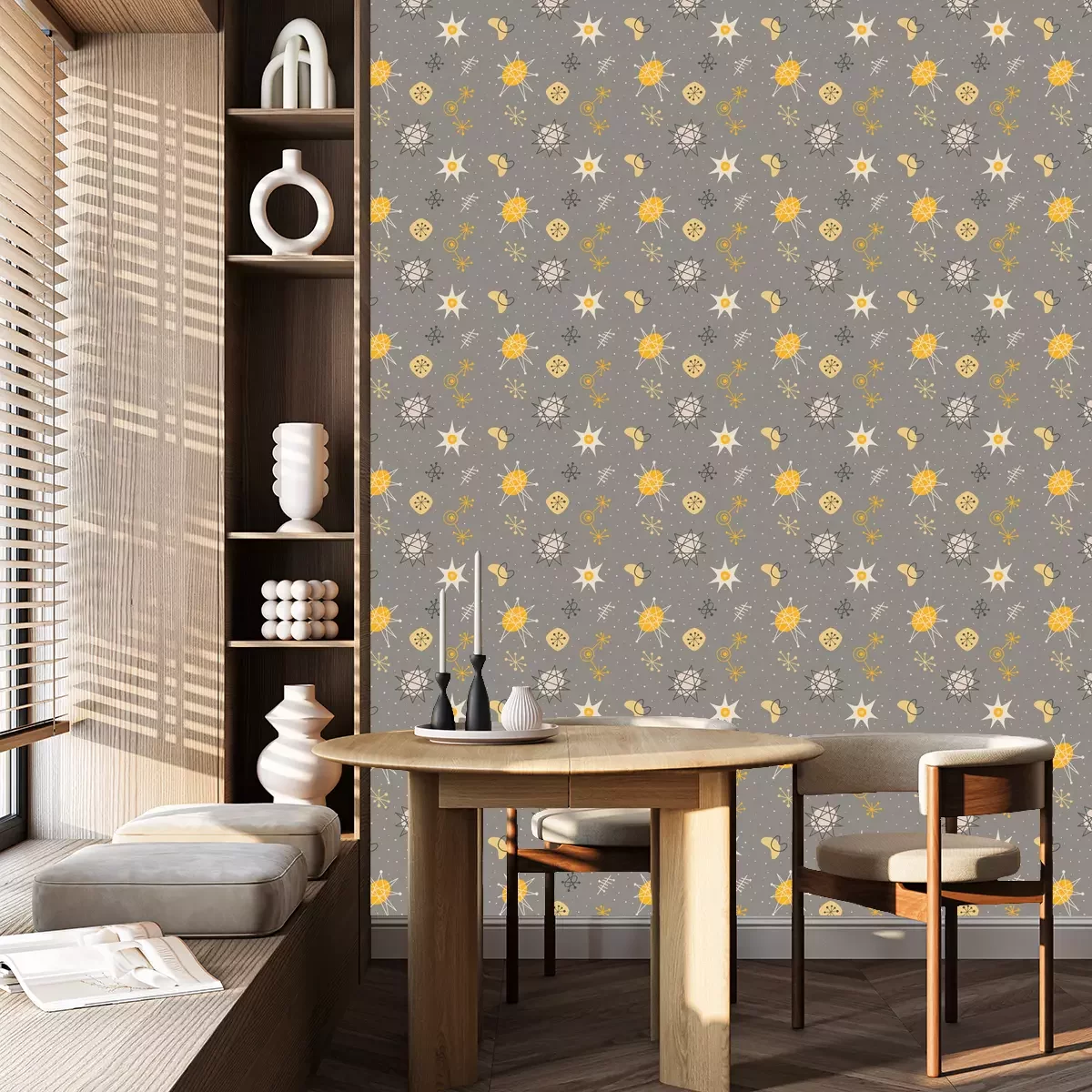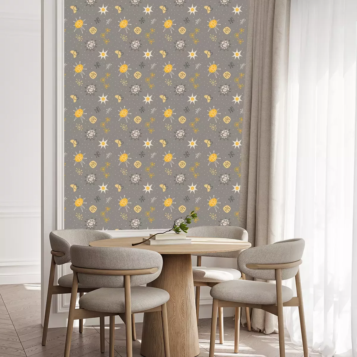 Die Tapete zeichnet sich durch ein sich wiederholendes Muster aus, das ein rhythmisches Design erzeugt. Als Trägermaterial wird hier Vlies verwendet. Sie wird in Rollen mit den standardisierten Maßen 10 m x 53 cm verkauft. Eine Fototapete ist eine spezielle Art von Tapete, auf der ein Foto oder ein realistisches Bild (z.B. eine Landschaft oder eine Stadtansicht) großflächig aufgedruckt ist. Sie wird nicht in Standardrollen verkauft, sondern in Bahnen, die auf die Abmessungen einer bestimmten Wand zugeschnitten sind. So passt das gesamte Motiv perfekt darauf. Zudem können Sie das Material wählen, aus dem die Tapete hergestellt werden soll.