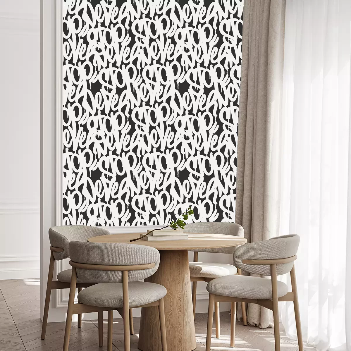 Die Tapete zeichnet sich durch ein sich wiederholendes Muster aus, das ein rhythmisches Design erzeugt. Als Trägermaterial wird hier Vlies verwendet. Sie wird in Rollen mit den standardisierten Maßen 10 m x 53 cm verkauft. Eine Fototapete ist eine spezielle Art von Tapete, auf der ein Foto oder ein realistisches Bild (z.B. eine Landschaft oder eine Stadtansicht) großflächig aufgedruckt ist. Sie wird nicht in Standardrollen verkauft, sondern in Bahnen, die auf die Abmessungen einer bestimmten Wand zugeschnitten sind. So passt das gesamte Motiv perfekt darauf. Zudem können Sie das Material wählen, aus dem die Tapete hergestellt werden soll.