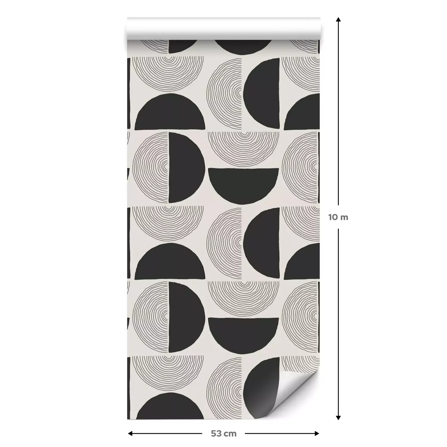Eine Standard-Tapetenrolle hat die Maße 0,53 m x 10 m und deckt eine Wandfläche von etwa 5 m² ab.