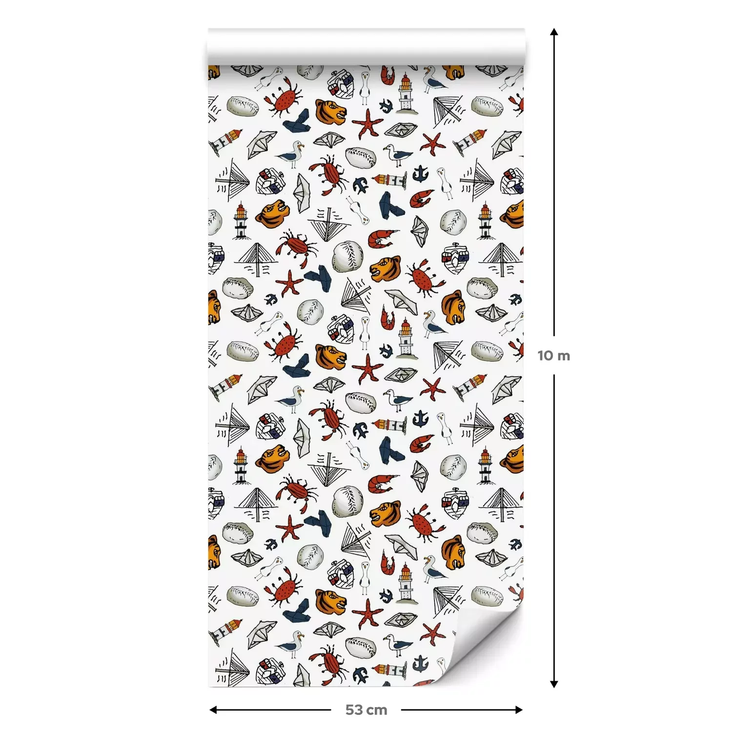 Eine Standard-Tapetenrolle hat die Maße 0,53 m x 10 m und deckt eine Wandfläche von etwa 5 m² ab.