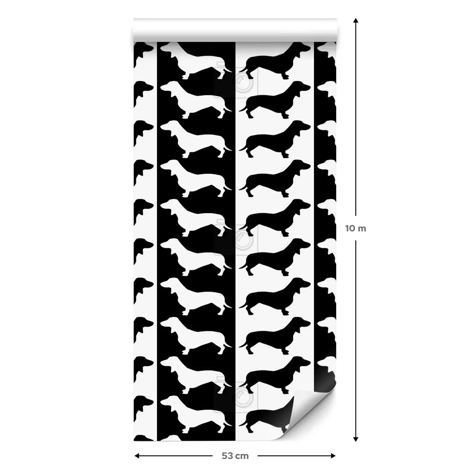 Eine Standard-Tapetenrolle hat die Maße 0,53 m x 10 m und deckt eine Wandfläche von etwa 5 m² ab.