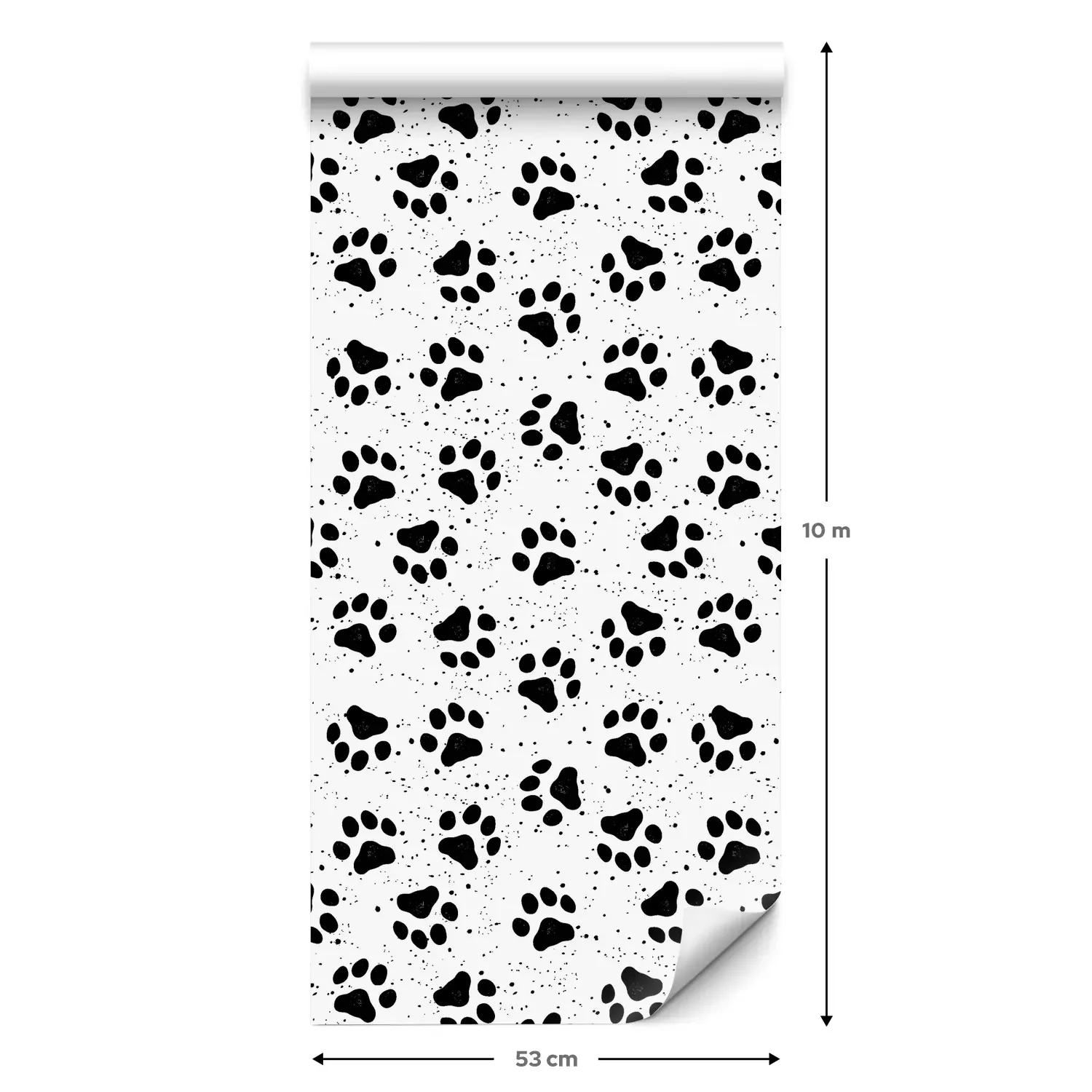 Eine Standard-Tapetenrolle hat die Maße 0,53 m x 10 m und deckt eine Wandfläche von etwa 5 m² ab.
