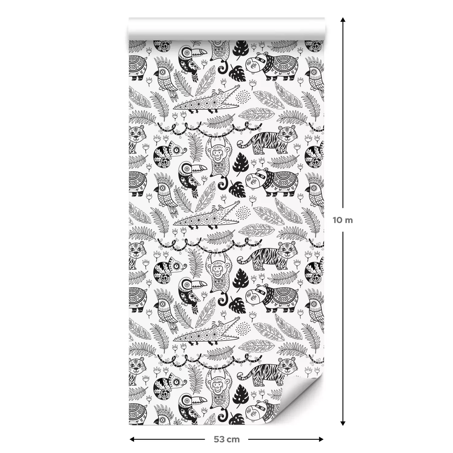 Eine Standard-Tapetenrolle hat die Maße 0,53 m x 10 m und deckt eine Wandfläche von etwa 5 m² ab.