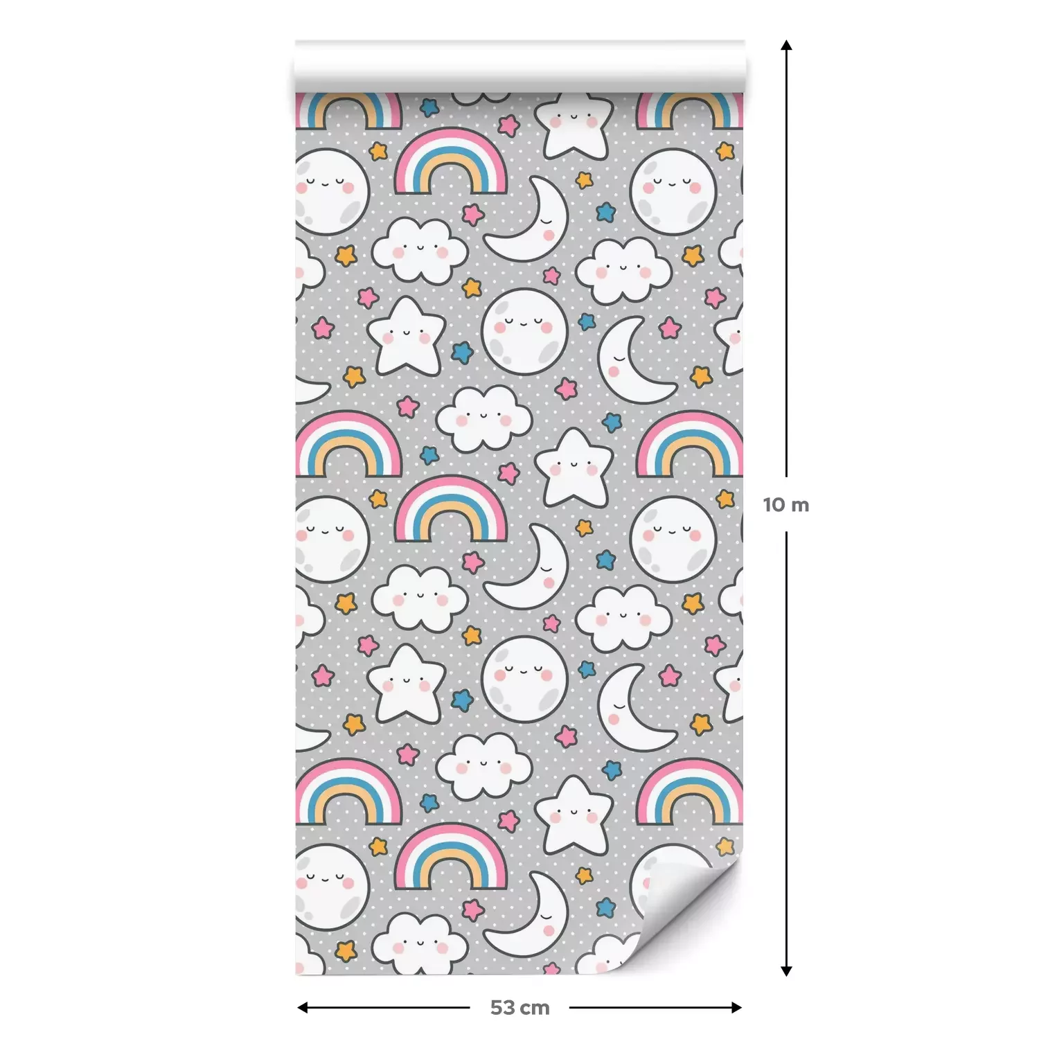 Eine Standard-Tapetenrolle hat die Maße 0,53 m x 10 m und deckt eine Wandfläche von etwa 5 m² ab.