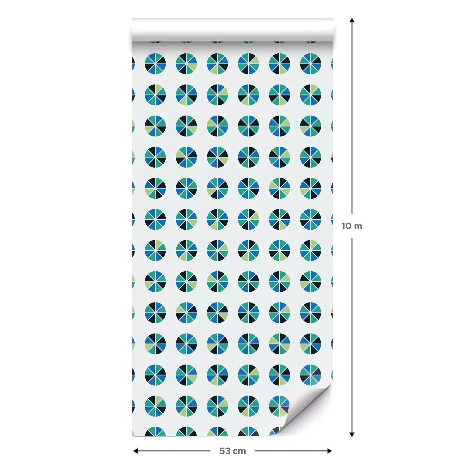 Eine Standard-Tapetenrolle hat die Maße 0,53 m x 10 m und deckt eine Wandfläche von etwa 5 m² ab.