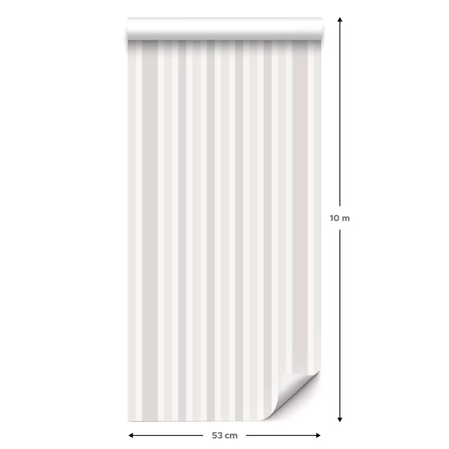 Eine Standard-Tapetenrolle hat die Maße 0,53 m x 10 m und deckt eine Wandfläche von etwa 5 m² ab.