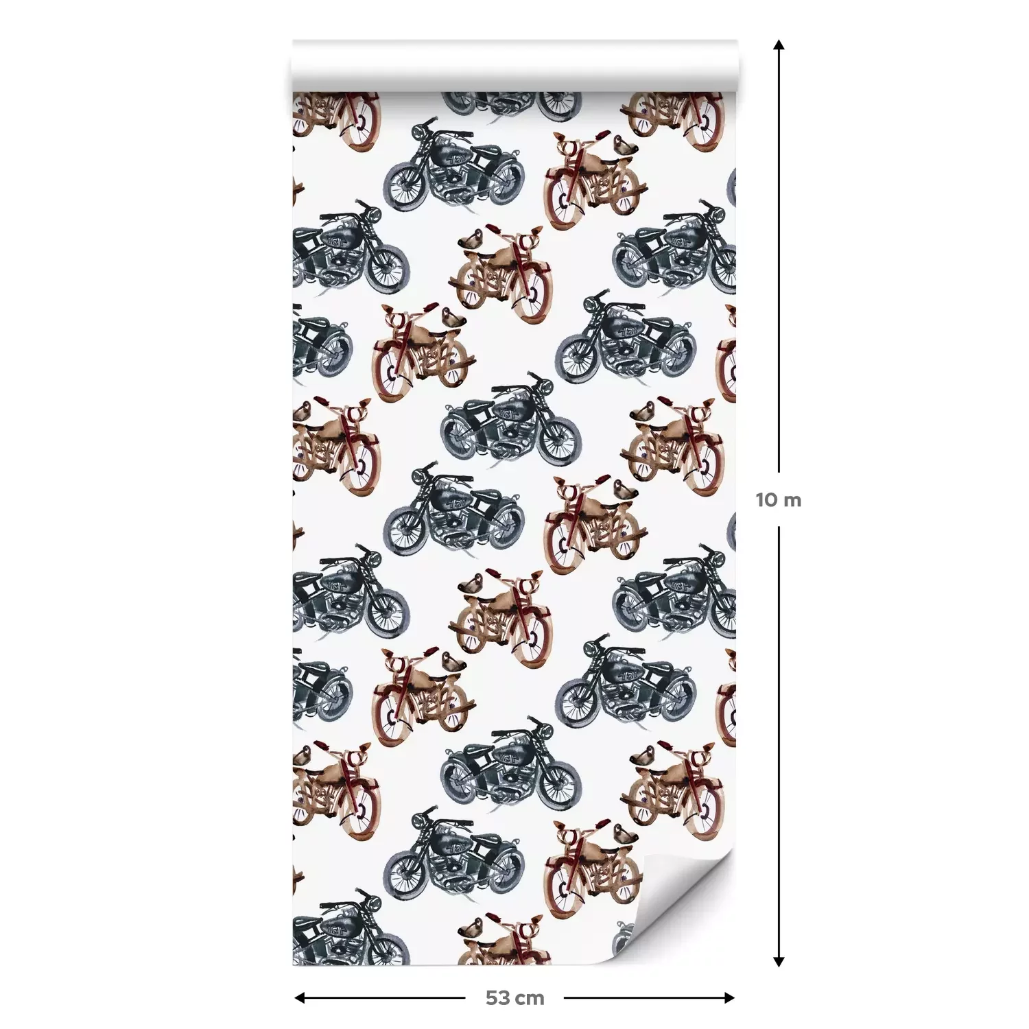 Eine Standard-Tapetenrolle hat die Maße 0,53 m x 10 m und deckt eine Wandfläche von etwa 5 m² ab.