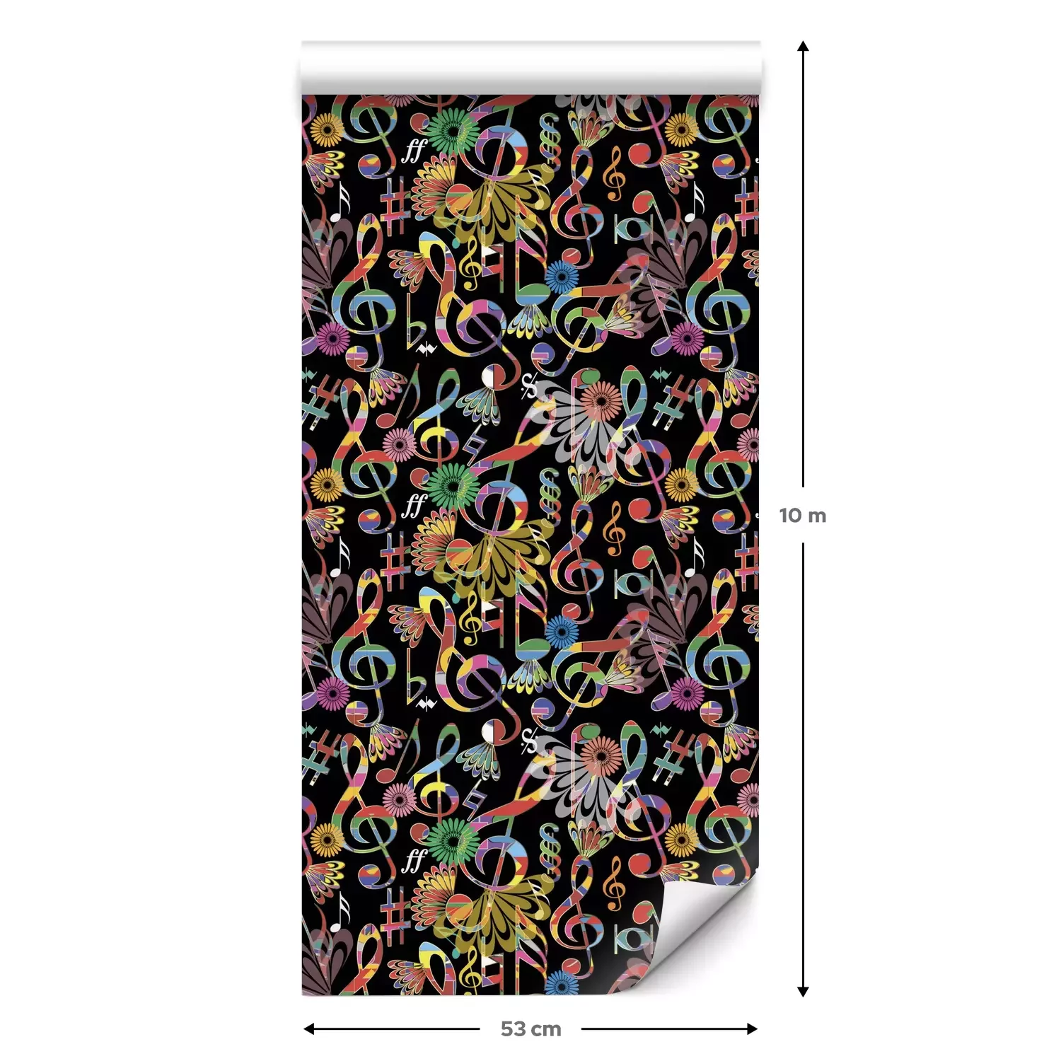 Eine Standard-Tapetenrolle hat die Maße 0,53 m x 10 m und deckt eine Wandfläche von etwa 5 m² ab.