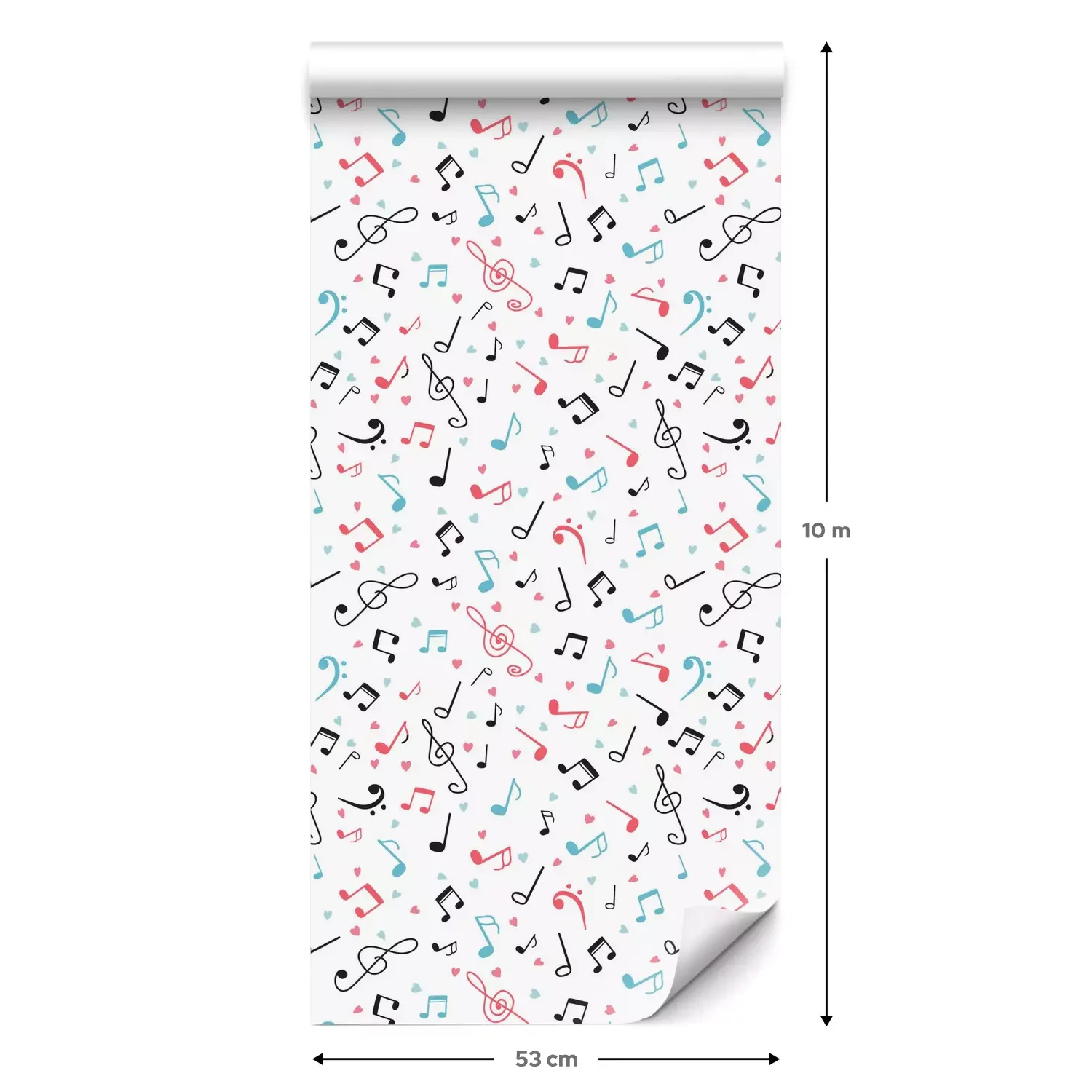 Eine Standard-Tapetenrolle hat die Maße 0,53 m x 10 m und deckt eine Wandfläche von etwa 5 m² ab.