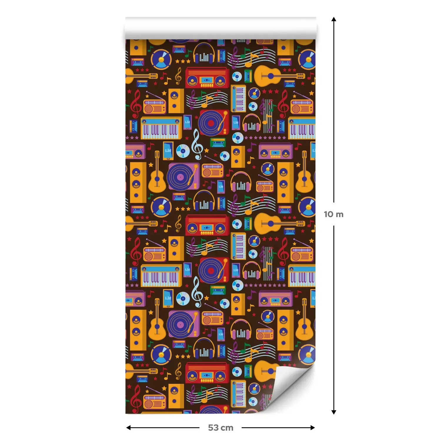 Eine Standard-Tapetenrolle hat die Maße 0,53 m x 10 m und deckt eine Wandfläche von etwa 5 m² ab.
