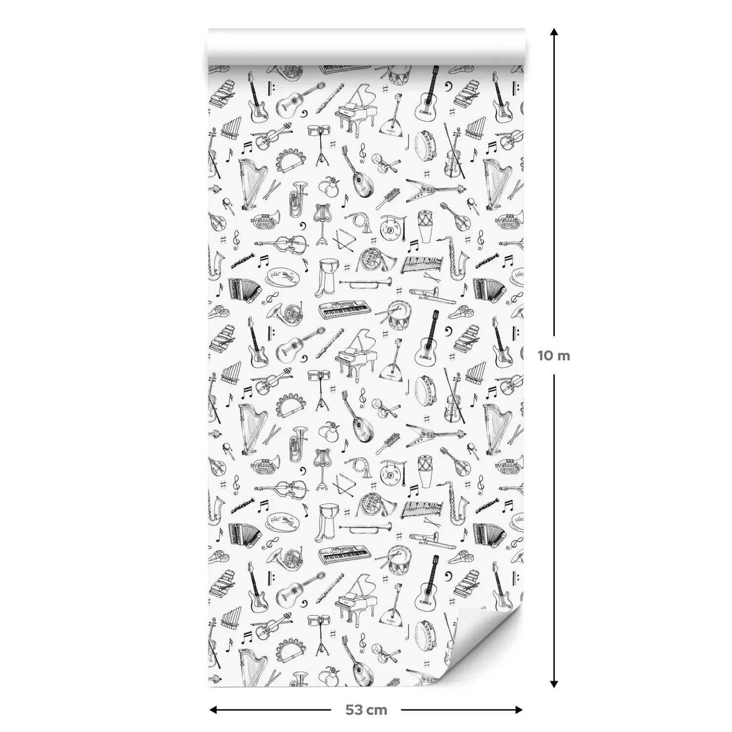 Eine Standard-Tapetenrolle hat die Maße 0,53 m x 10 m und deckt eine Wandfläche von etwa 5 m² ab.