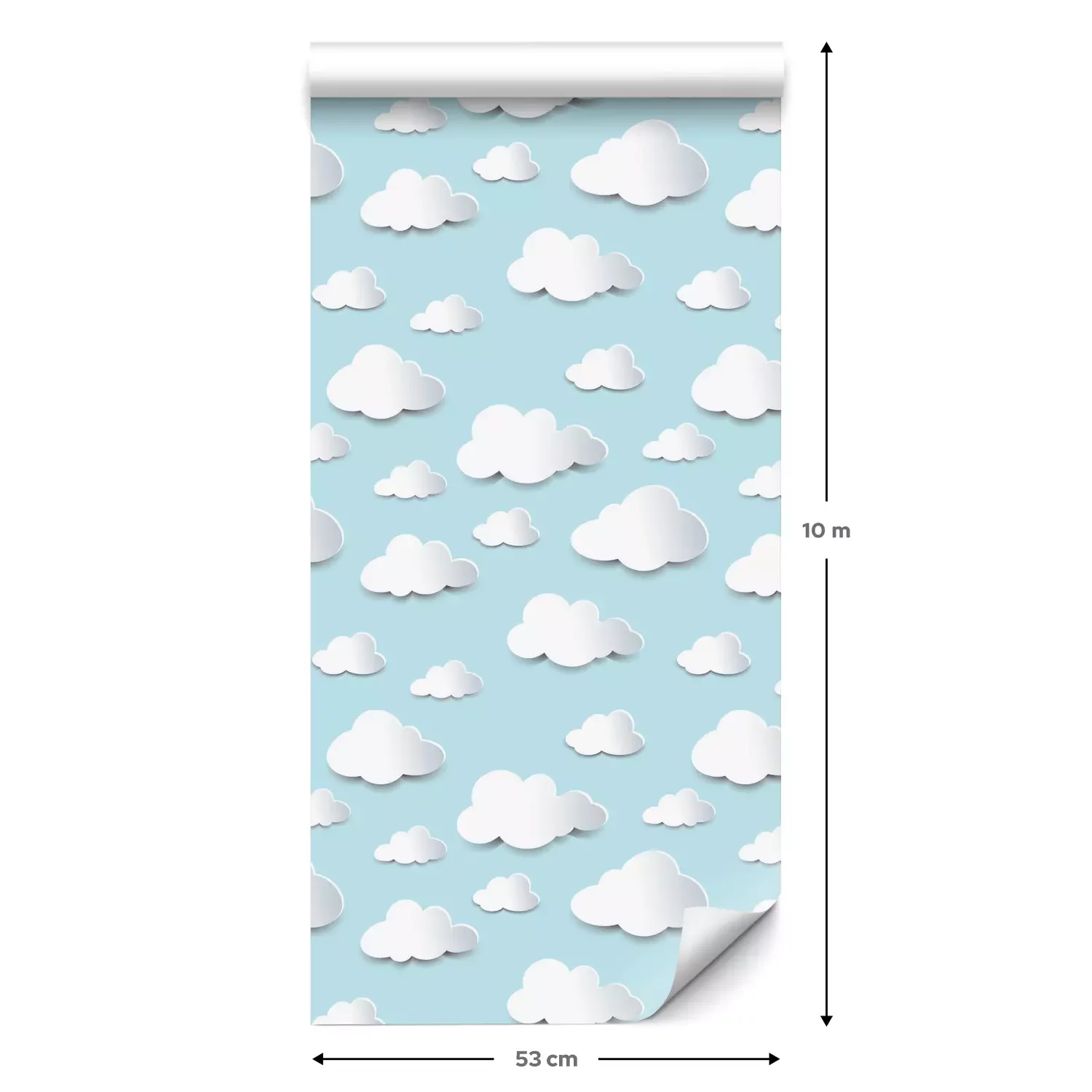 Eine Standard-Tapetenrolle hat die Maße 0,53 m x 10 m und deckt eine Wandfläche von etwa 5 m² ab.