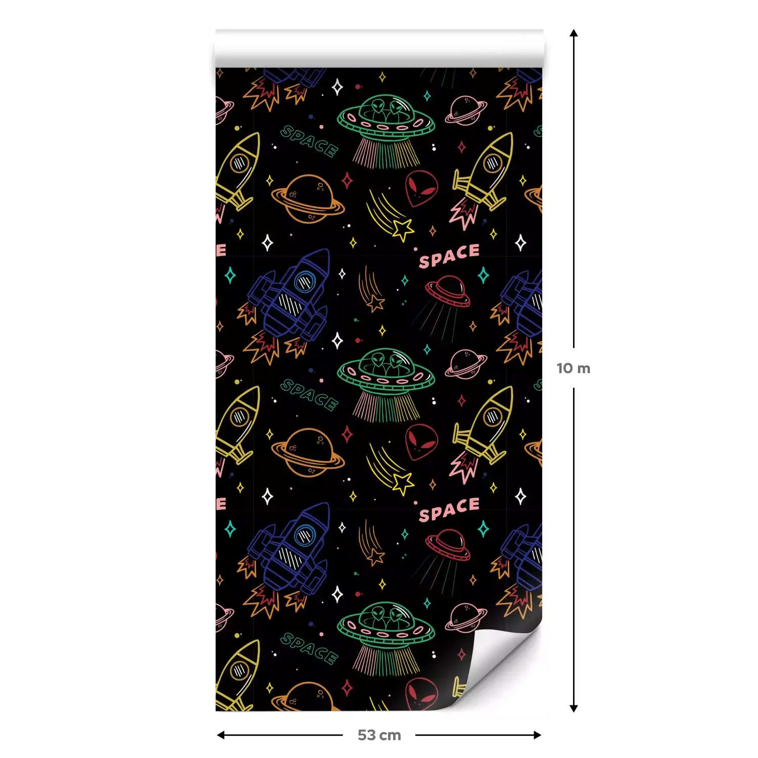 Eine Standard-Tapetenrolle hat die Maße 0,53 m x 10 m und deckt eine Wandfläche von etwa 5 m² ab.