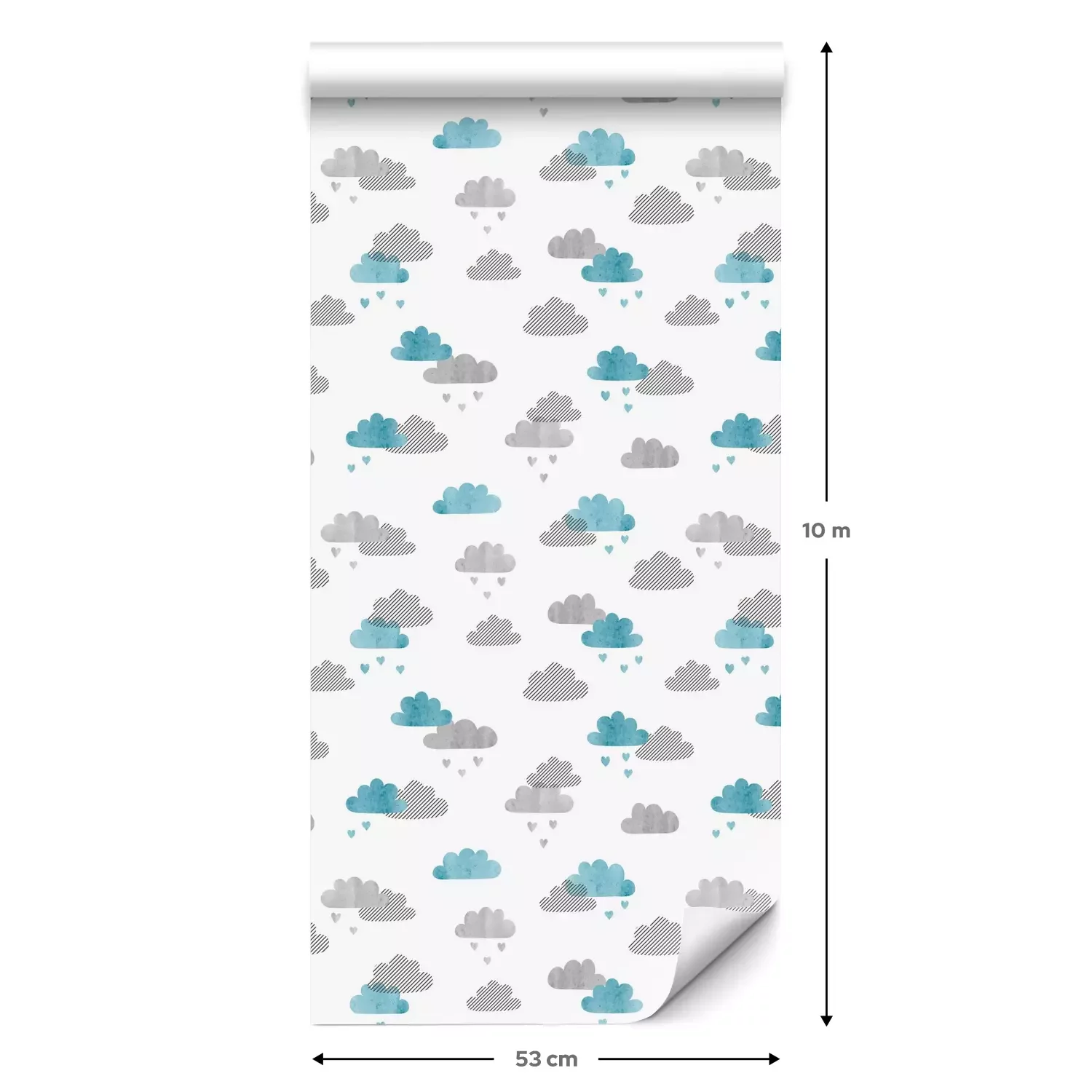 Eine Standard-Tapetenrolle hat die Maße 0,53 m x 10 m und deckt eine Wandfläche von etwa 5 m² ab.