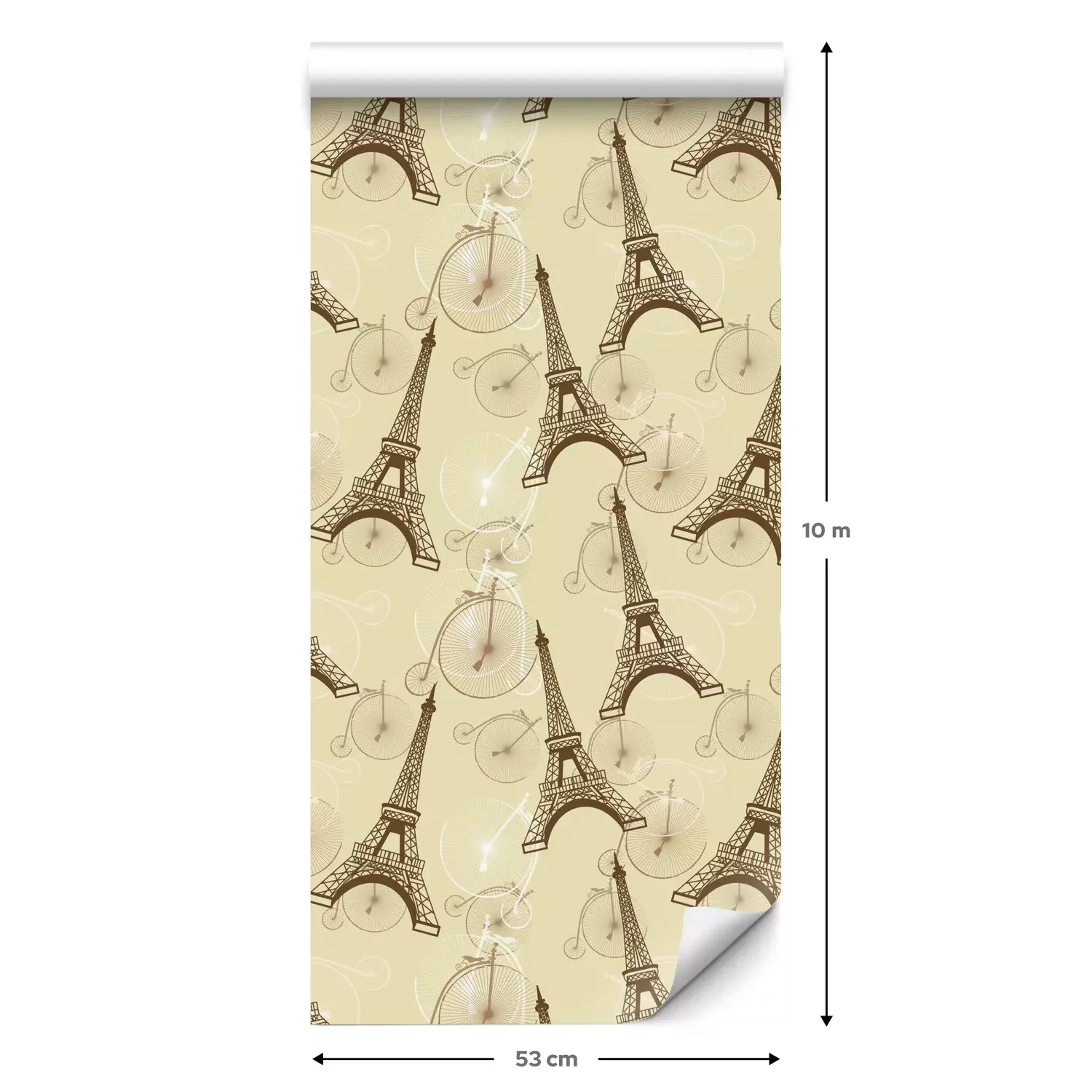 Eine Standard-Tapetenrolle hat die Maße 0,53 m x 10 m und deckt eine Wandfläche von etwa 5 m² ab.
