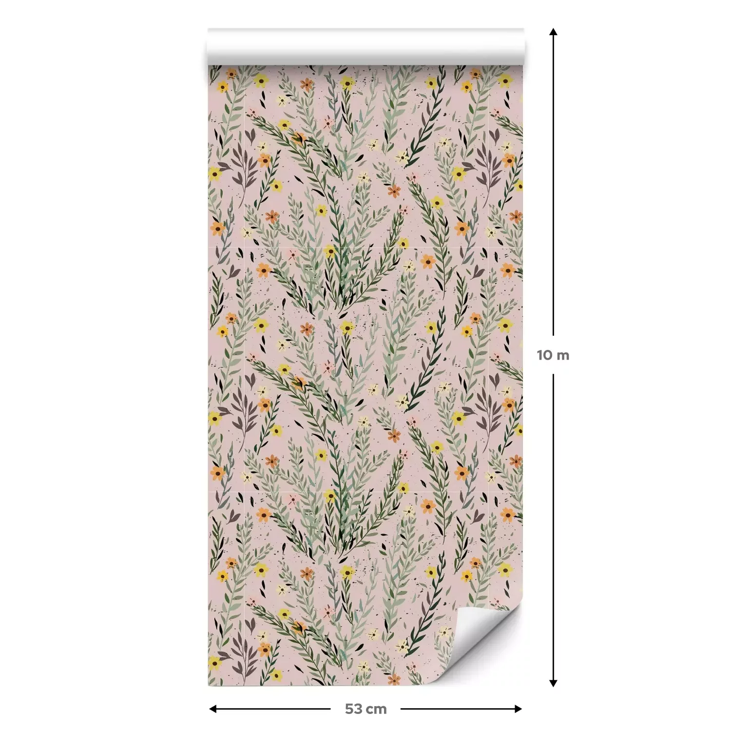 Eine Standard-Tapetenrolle hat die Maße 0,53 m x 10 m und deckt eine Wandfläche von etwa 5 m² ab.