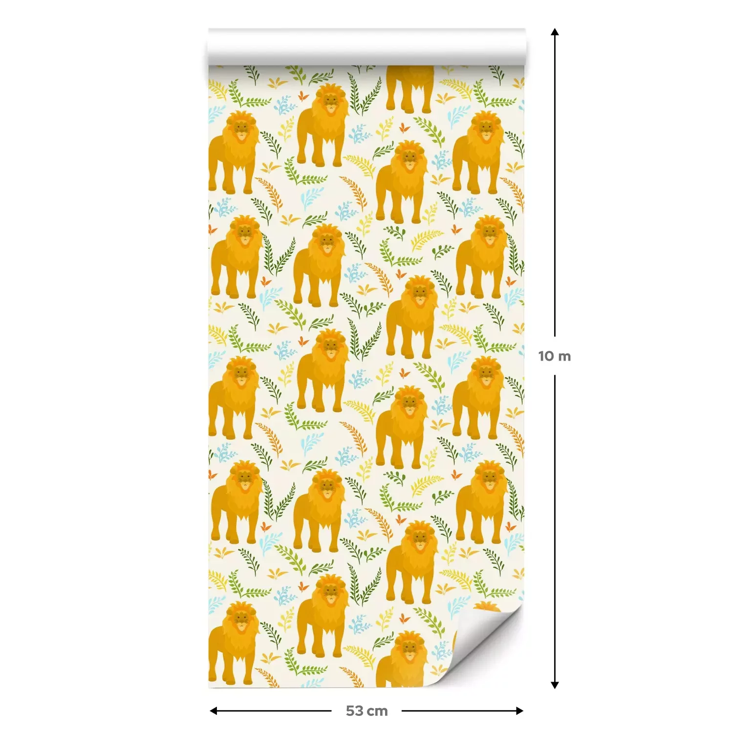 Eine Standard-Tapetenrolle hat die Maße 0,53 m x 10 m und deckt eine Wandfläche von etwa 5 m² ab.