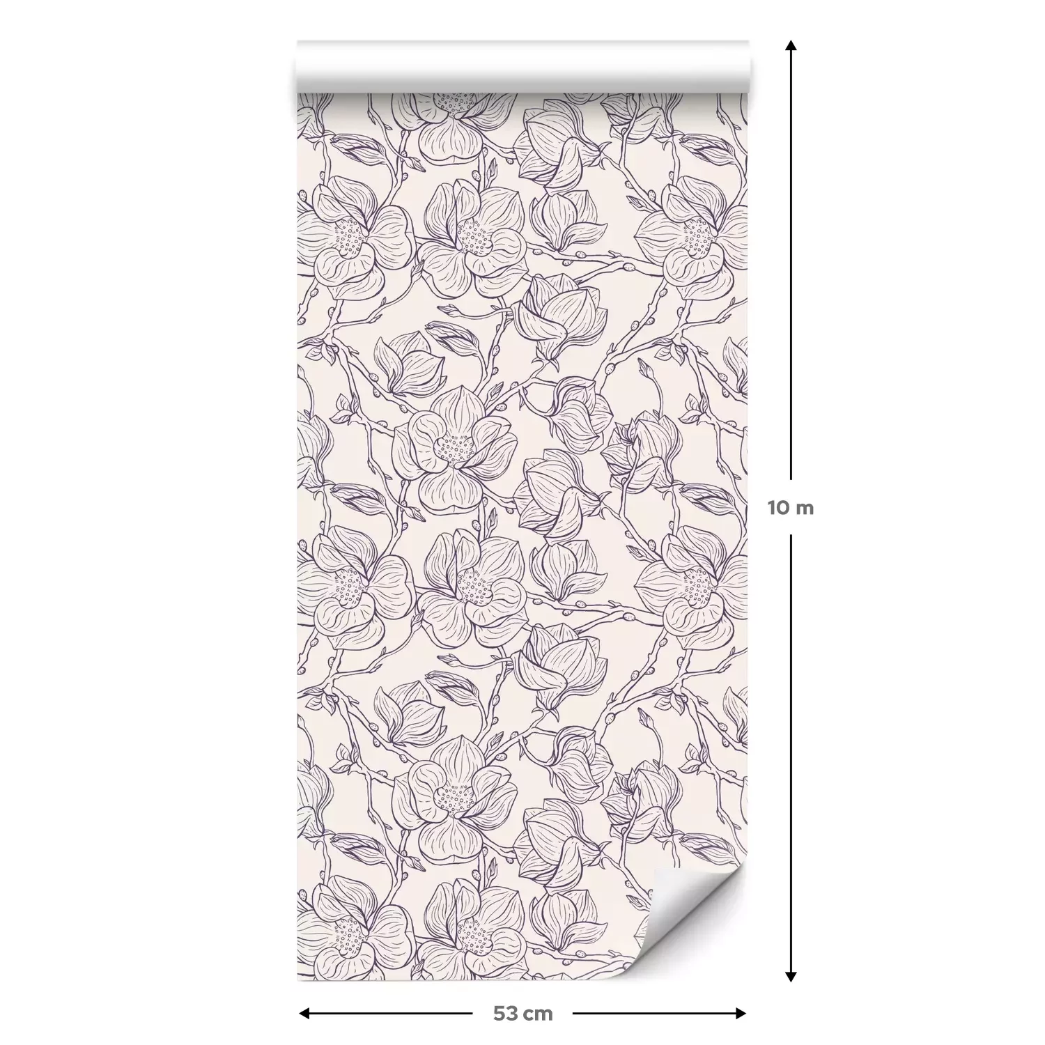 Eine Standard-Tapetenrolle hat die Maße 0,53 m x 10 m und deckt eine Wandfläche von etwa 5 m² ab.