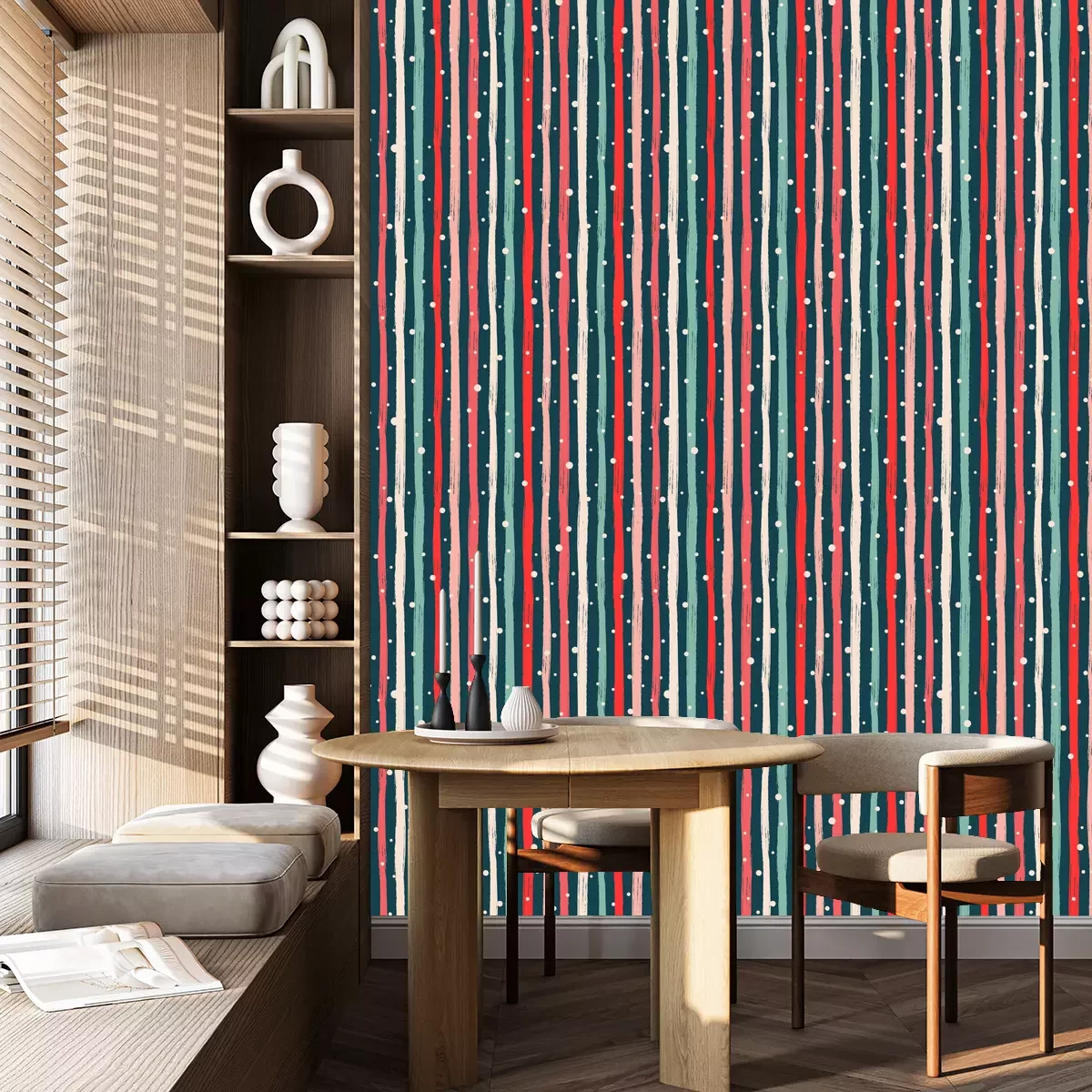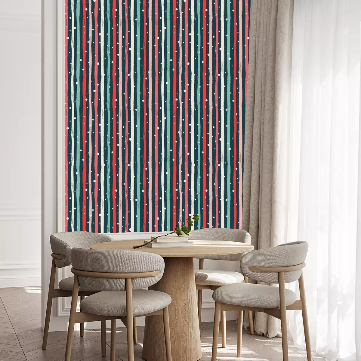 Die Tapete zeichnet sich durch ein sich wiederholendes Muster aus, das ein rhythmisches Design erzeugt. Als Trägermaterial wird hier Vlies verwendet. Sie wird in Rollen mit den standardisierten Maßen 10 m x 53 cm verkauft. Eine Fototapete ist eine spezielle Art von Tapete, auf der ein Foto oder ein realistisches Bild (z.B. eine Landschaft oder eine Stadtansicht) großflächig aufgedruckt ist. Sie wird nicht in Standardrollen verkauft, sondern in Bahnen, die auf die Abmessungen einer bestimmten Wand zugeschnitten sind. So passt das gesamte Motiv perfekt darauf. Zudem können Sie das Material wählen, aus dem die Tapete hergestellt werden soll.