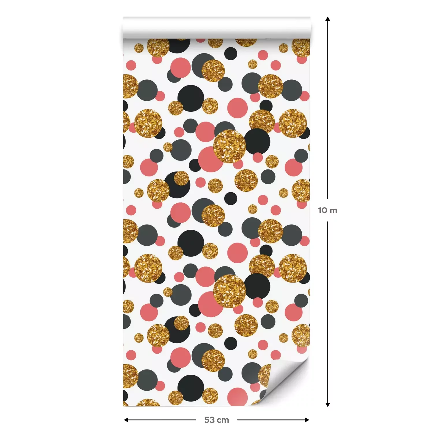 Eine Standard-Tapetenrolle hat die Maße 0,53 m x 10 m und deckt eine Wandfläche von etwa 5 m² ab.