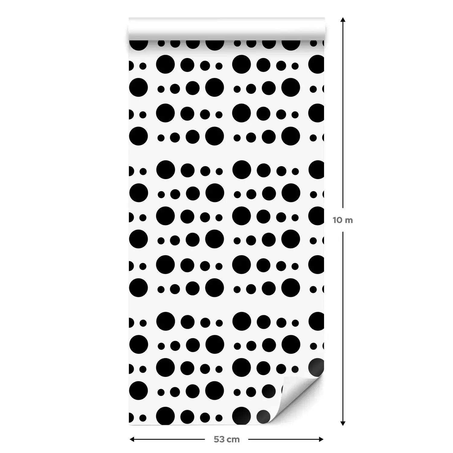 Eine Standard-Tapetenrolle hat die Maße 0,53 m x 10 m und deckt eine Wandfläche von etwa 5 m² ab.