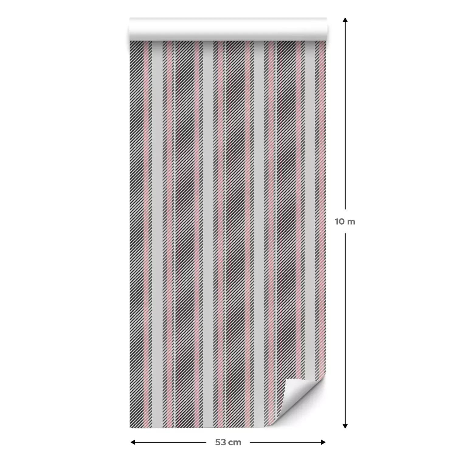 Eine Standard-Tapetenrolle hat die Maße 0,53 m x 10 m und deckt eine Wandfläche von etwa 5 m² ab.