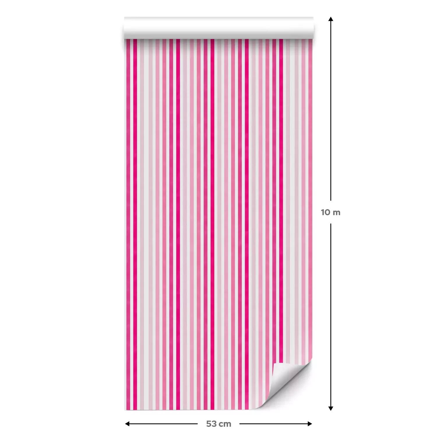 Eine Standard-Tapetenrolle hat die Maße 0,53 m x 10 m und deckt eine Wandfläche von etwa 5 m² ab.