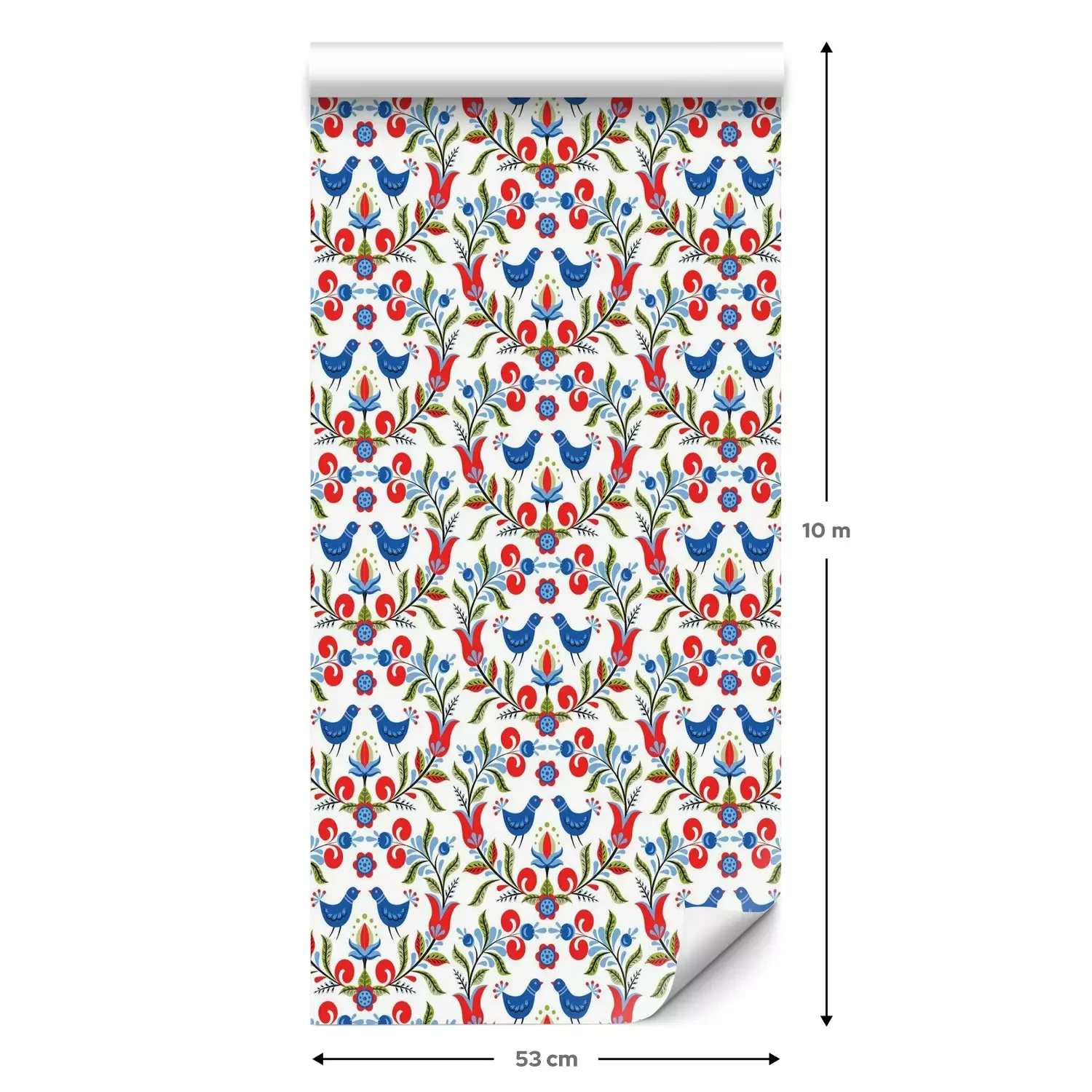 Eine Standard-Tapetenrolle hat die Maße 0,53 m x 10 m und deckt eine Wandfläche von etwa 5 m² ab.
