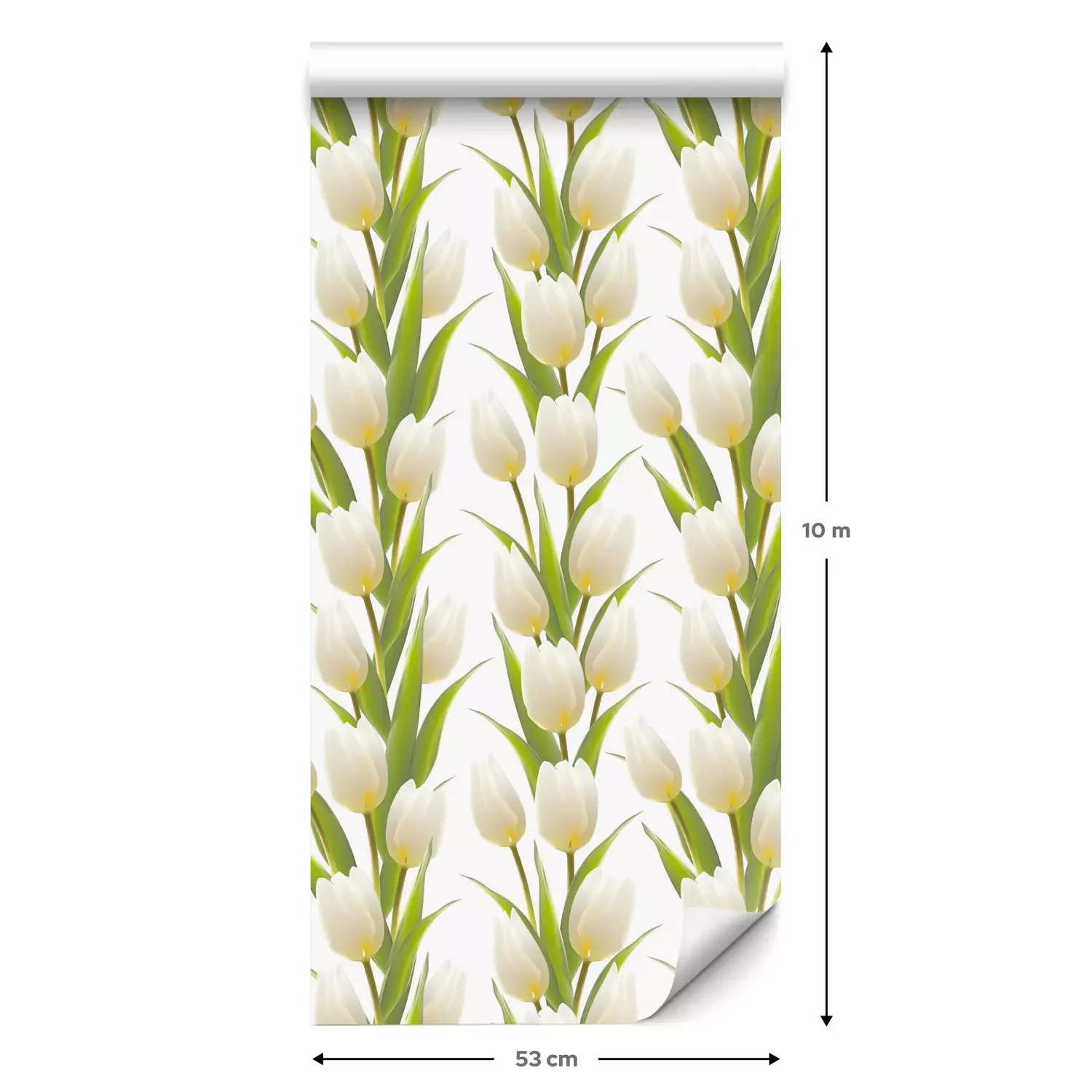Eine Standard-Tapetenrolle hat die Maße 0,53 m x 10 m und deckt eine Wandfläche von etwa 5 m² ab.