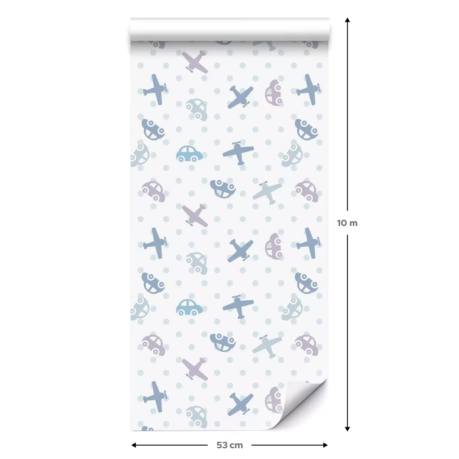 Eine Standard-Tapetenrolle hat die Maße 0,53 m x 10 m und deckt eine Wandfläche von etwa 5 m² ab.