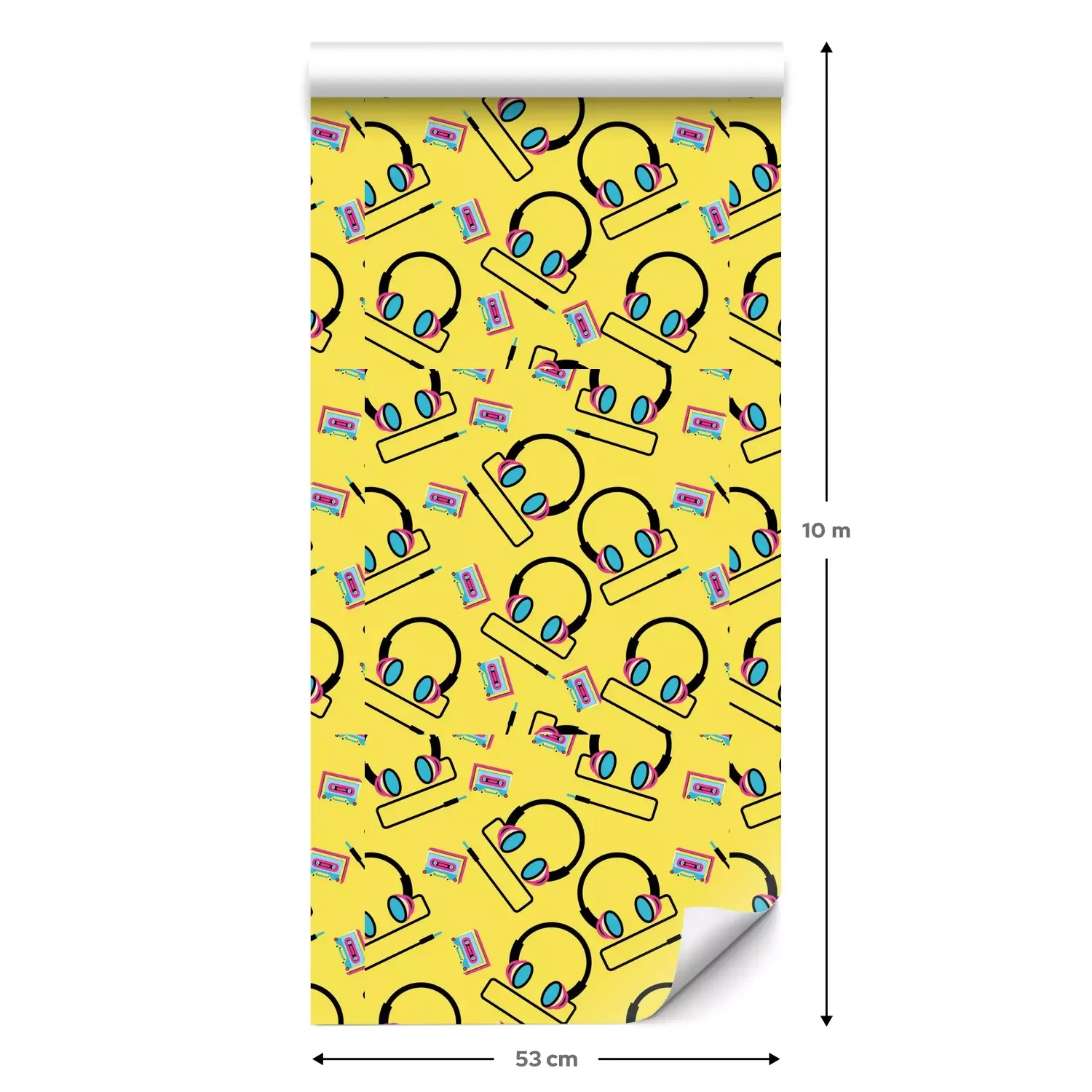 Eine Standard-Tapetenrolle hat die Maße 0,53 m x 10 m und deckt eine Wandfläche von etwa 5 m² ab.