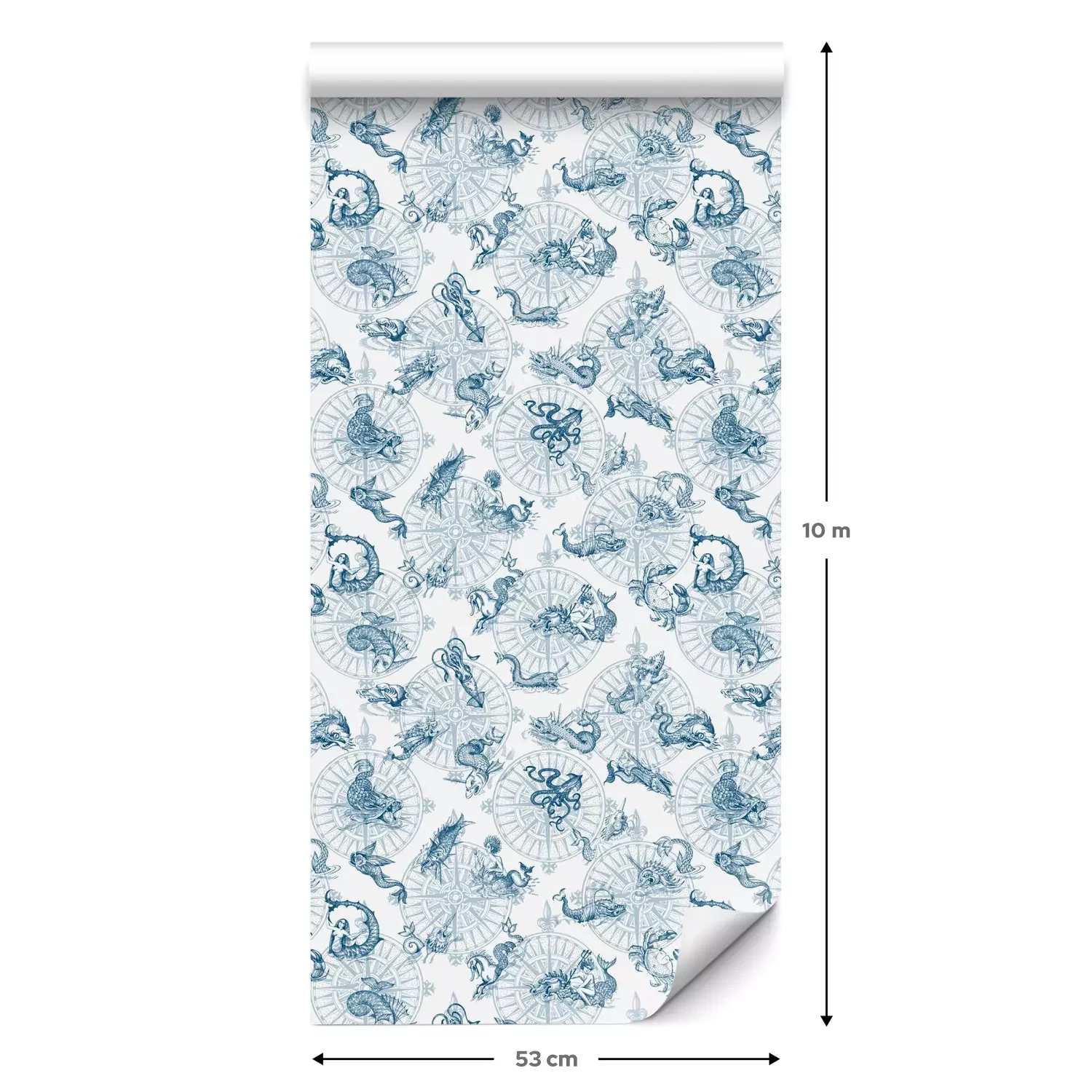Eine Standard-Tapetenrolle hat die Maße 0,53 m x 10 m und deckt eine Wandfläche von etwa 5 m² ab.