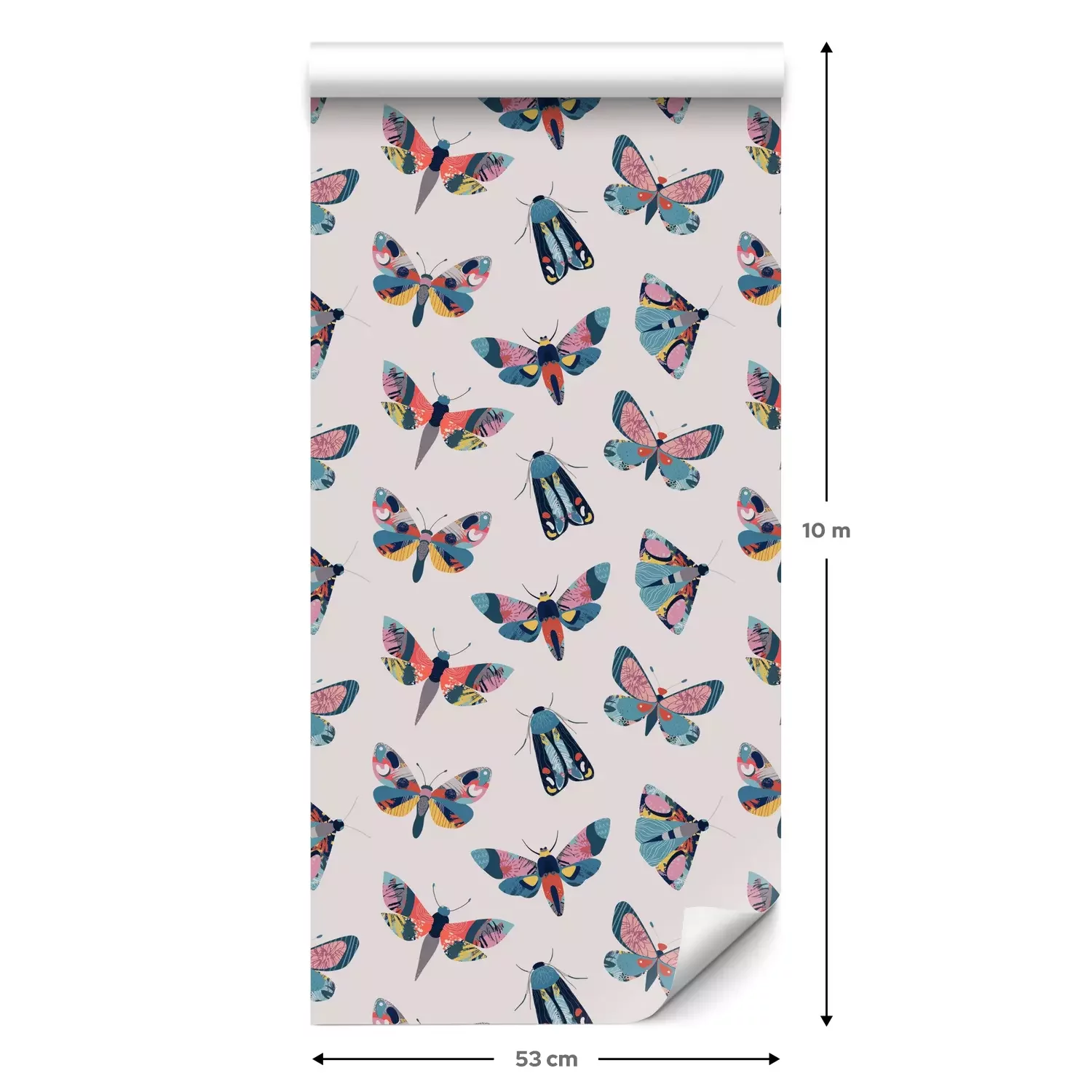 Eine Standard-Tapetenrolle hat die Maße 0,53 m x 10 m und deckt eine Wandfläche von etwa 5 m² ab.