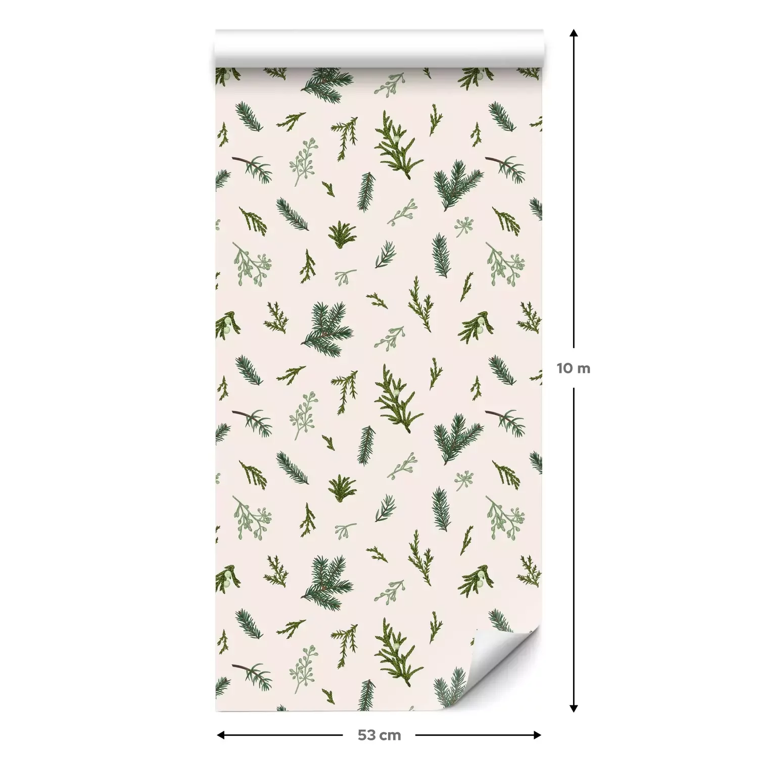 Eine Standard-Tapetenrolle hat die Maße 0,53 m x 10 m und deckt eine Wandfläche von etwa 5 m² ab.