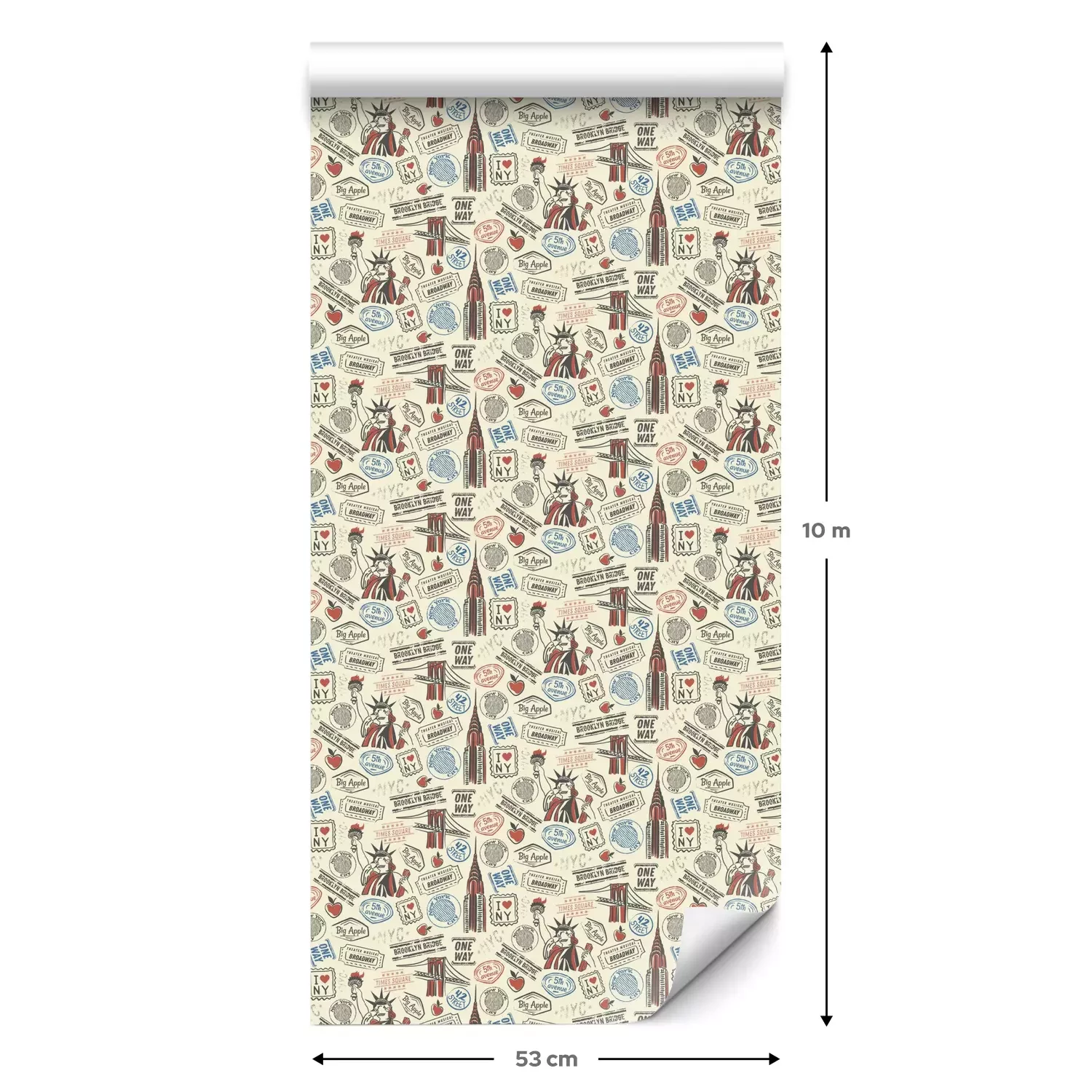 Eine Standard-Tapetenrolle hat die Maße 0,53 m x 10 m und deckt eine Wandfläche von etwa 5 m² ab.