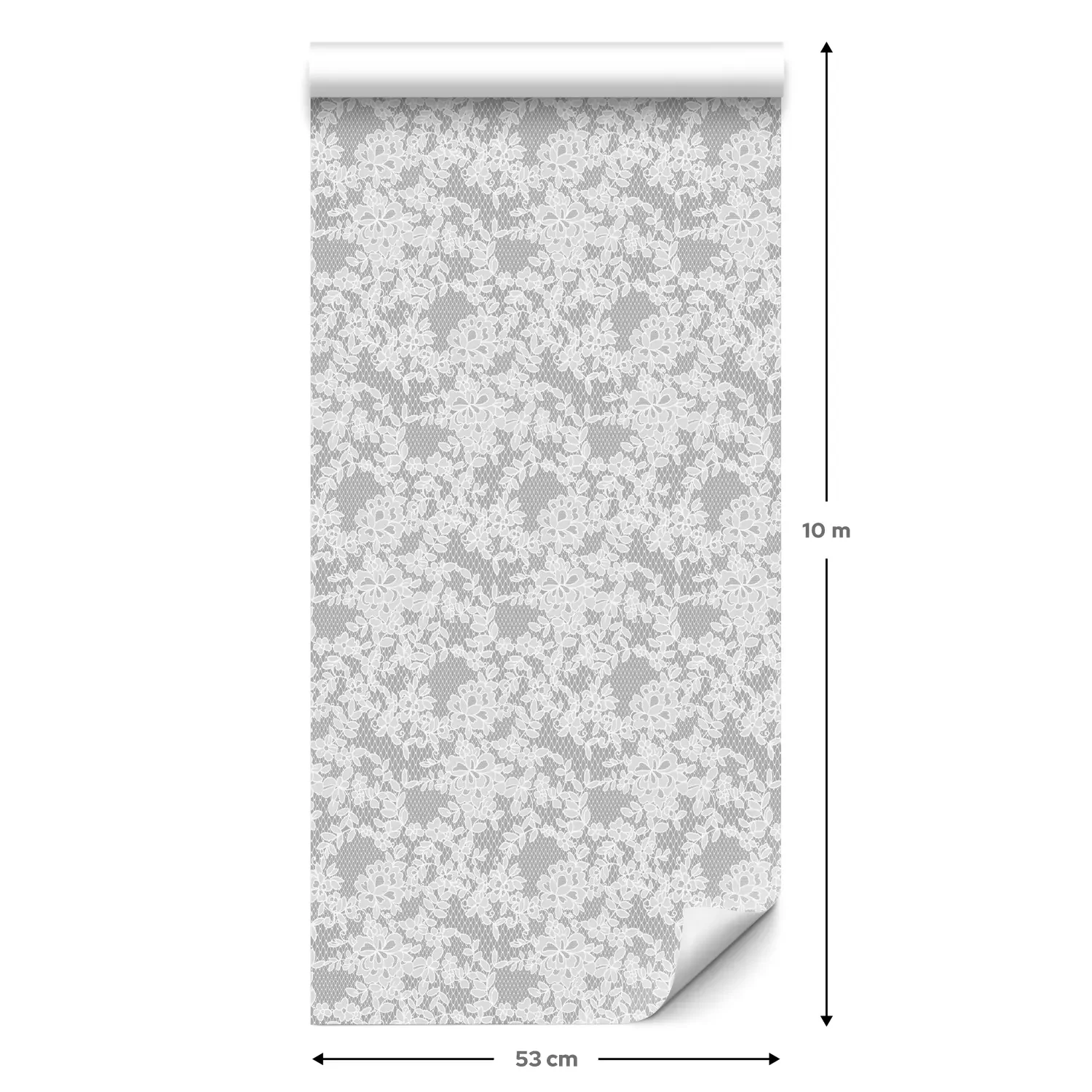 Eine Standard-Tapetenrolle hat die Maße 0,53 m x 10 m und deckt eine Wandfläche von etwa 5 m² ab.