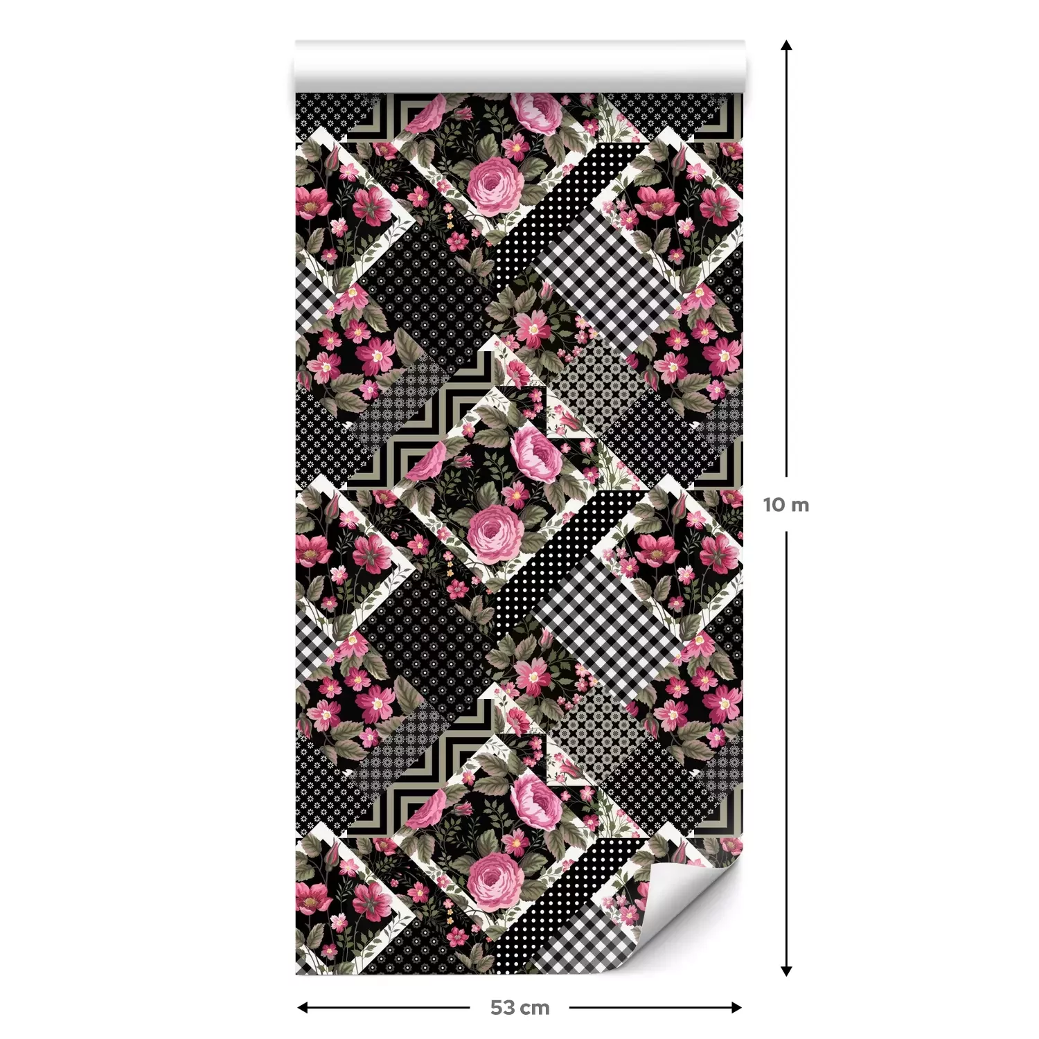 Eine Standard-Tapetenrolle hat die Maße 0,53 m x 10 m und deckt eine Wandfläche von etwa 5 m² ab.