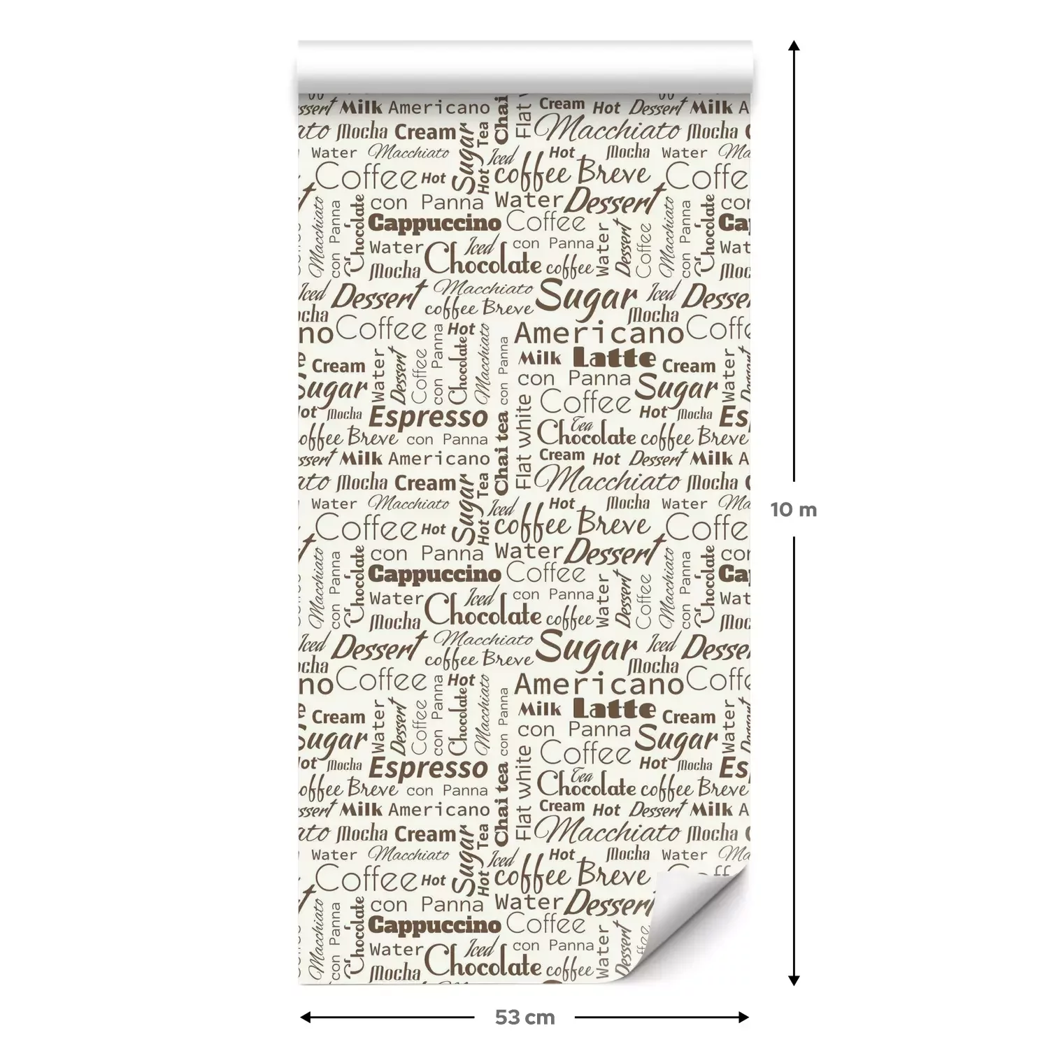Eine Standard-Tapetenrolle hat die Maße 0,53 m x 10 m und deckt eine Wandfläche von etwa 5 m² ab.