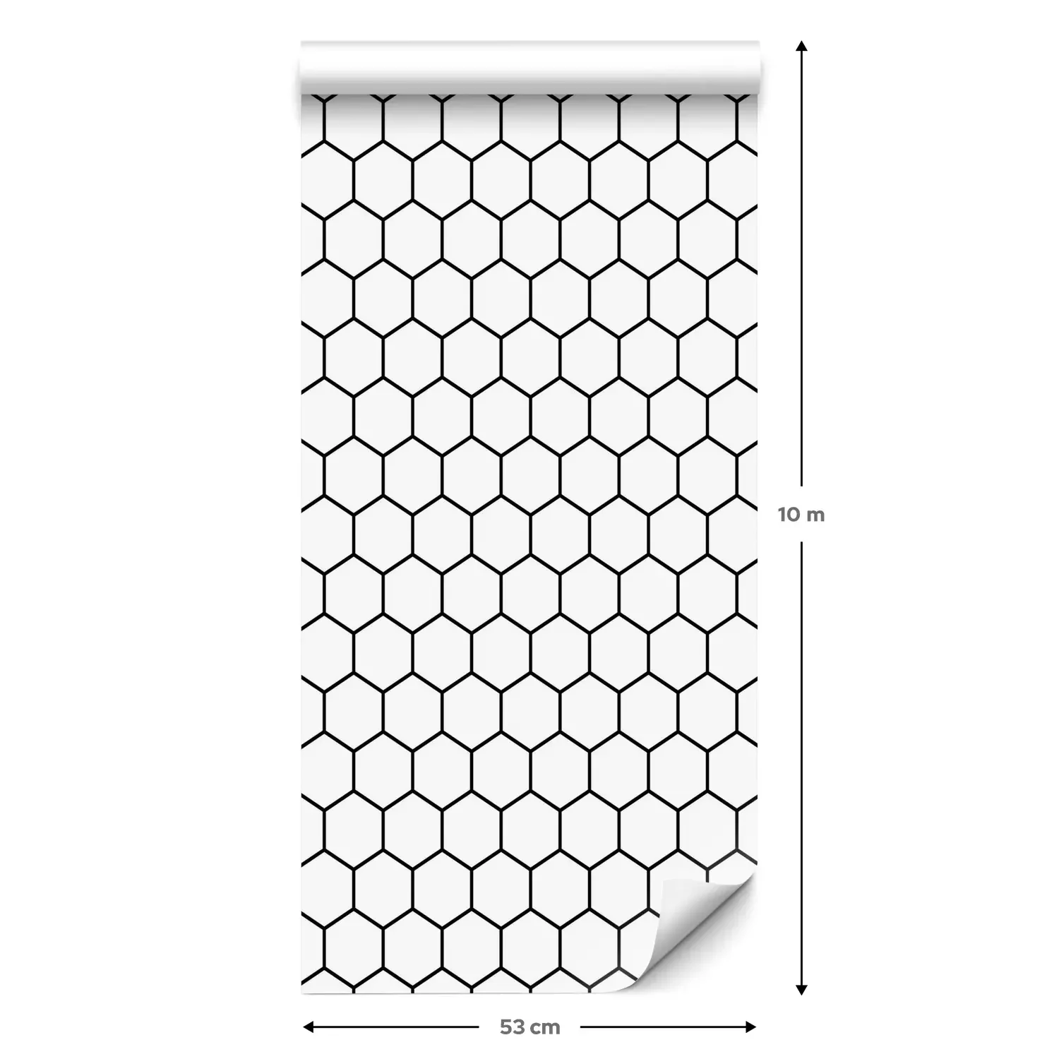 Eine Standard-Tapetenrolle hat die Maße 0,53 m x 10 m und deckt eine Wandfläche von etwa 5 m² ab.