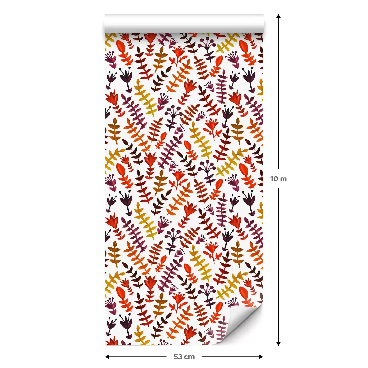Eine Standard-Tapetenrolle hat die Maße 0,53 m x 10 m und deckt eine Wandfläche von etwa 5 m² ab.