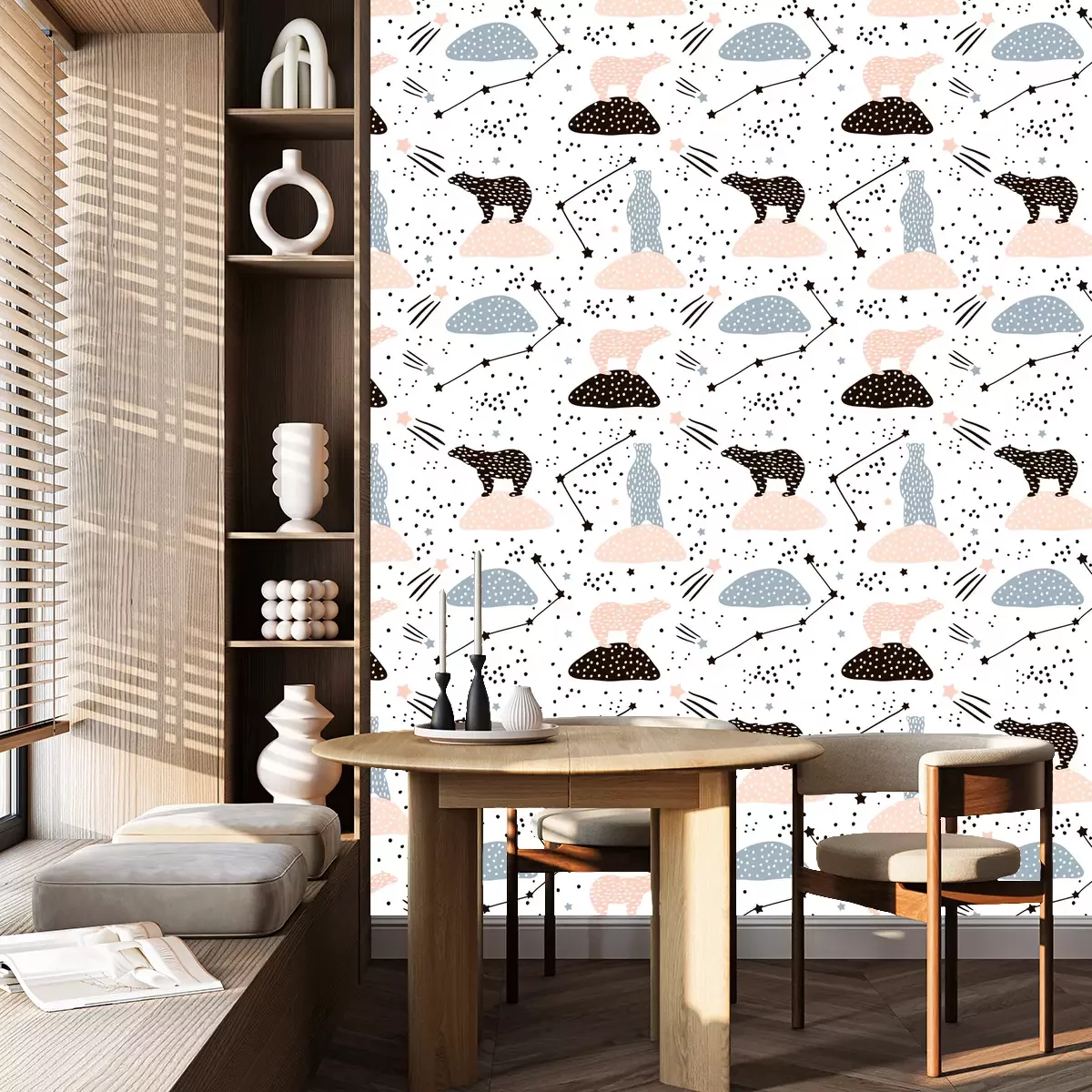 Die Tapete zeichnet sich durch ein sich wiederholendes Muster aus, das ein rhythmisches Design erzeugt. Als Trägermaterial wird hier Vlies verwendet. Sie wird in Rollen mit den standardisierten Maßen 10 m x 53 cm verkauft. Eine Fototapete ist eine spezielle Art von Tapete, auf der ein Foto oder ein realistisches Bild (z.B. eine Landschaft oder eine Stadtansicht) großflächig aufgedruckt ist. Sie wird nicht in Standardrollen verkauft, sondern in Bahnen, die auf die Abmessungen einer bestimmten Wand zugeschnitten sind. So passt das gesamte Motiv perfekt darauf. Zudem können Sie das Material wählen, aus dem die Tapete hergestellt werden soll.