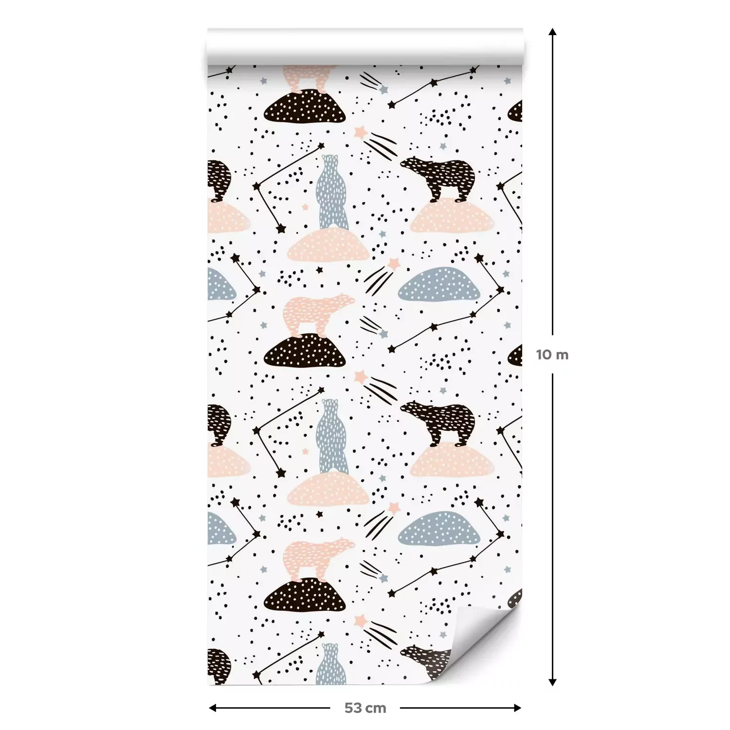 Eine Standard-Tapetenrolle hat die Maße 0,53 m x 10 m und deckt eine Wandfläche von etwa 5 m² ab.