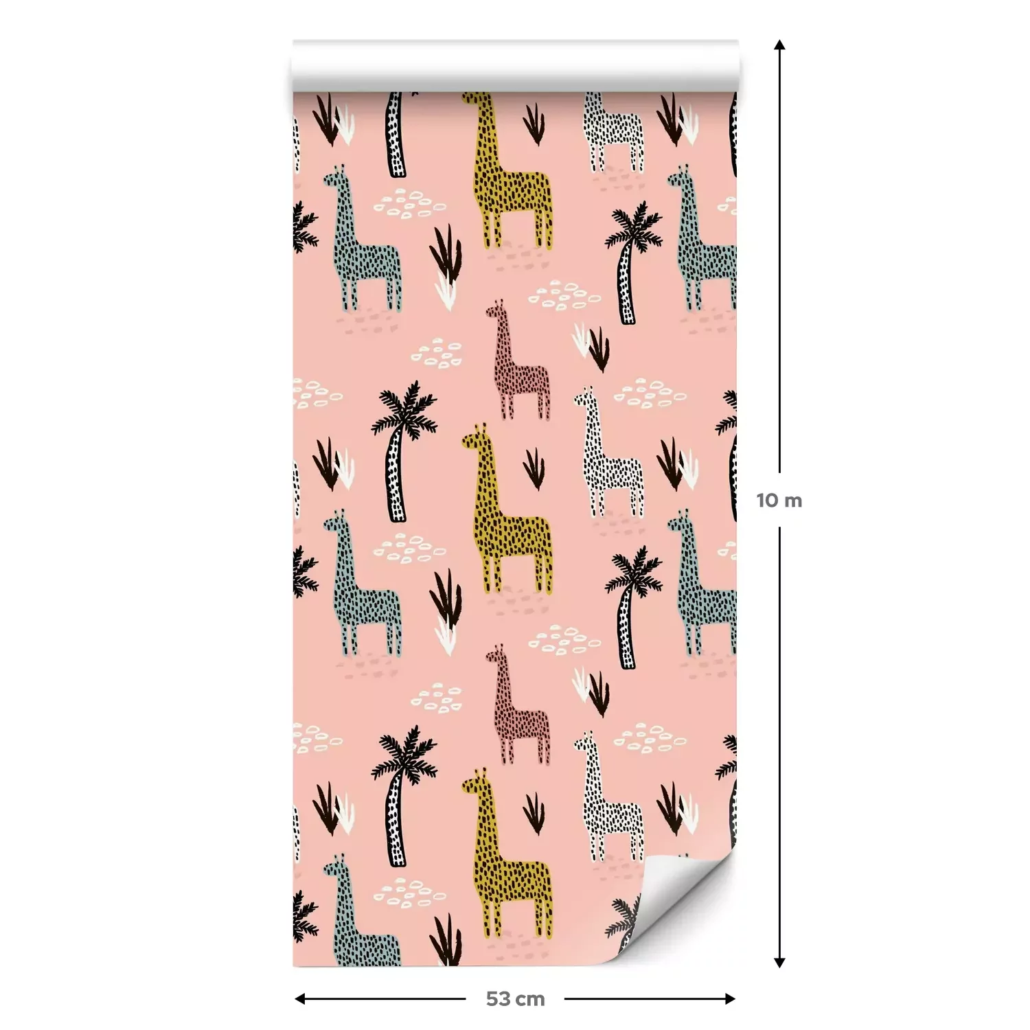 Eine Standard-Tapetenrolle hat die Maße 0,53 m x 10 m und deckt eine Wandfläche von etwa 5 m² ab.