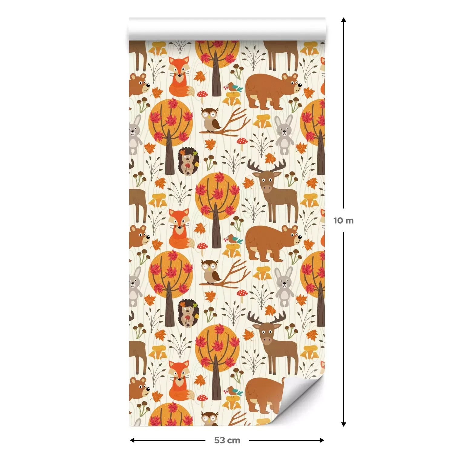 Eine Standard-Tapetenrolle hat die Maße 0,53 m x 10 m und deckt eine Wandfläche von etwa 5 m² ab.