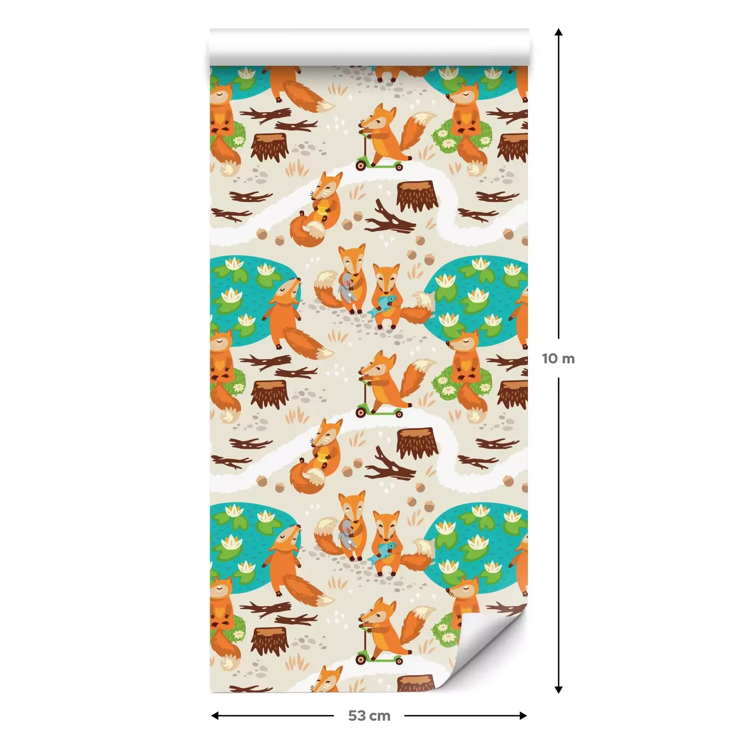 Eine Standard-Tapetenrolle hat die Maße 0,53 m x 10 m und deckt eine Wandfläche von etwa 5 m² ab.