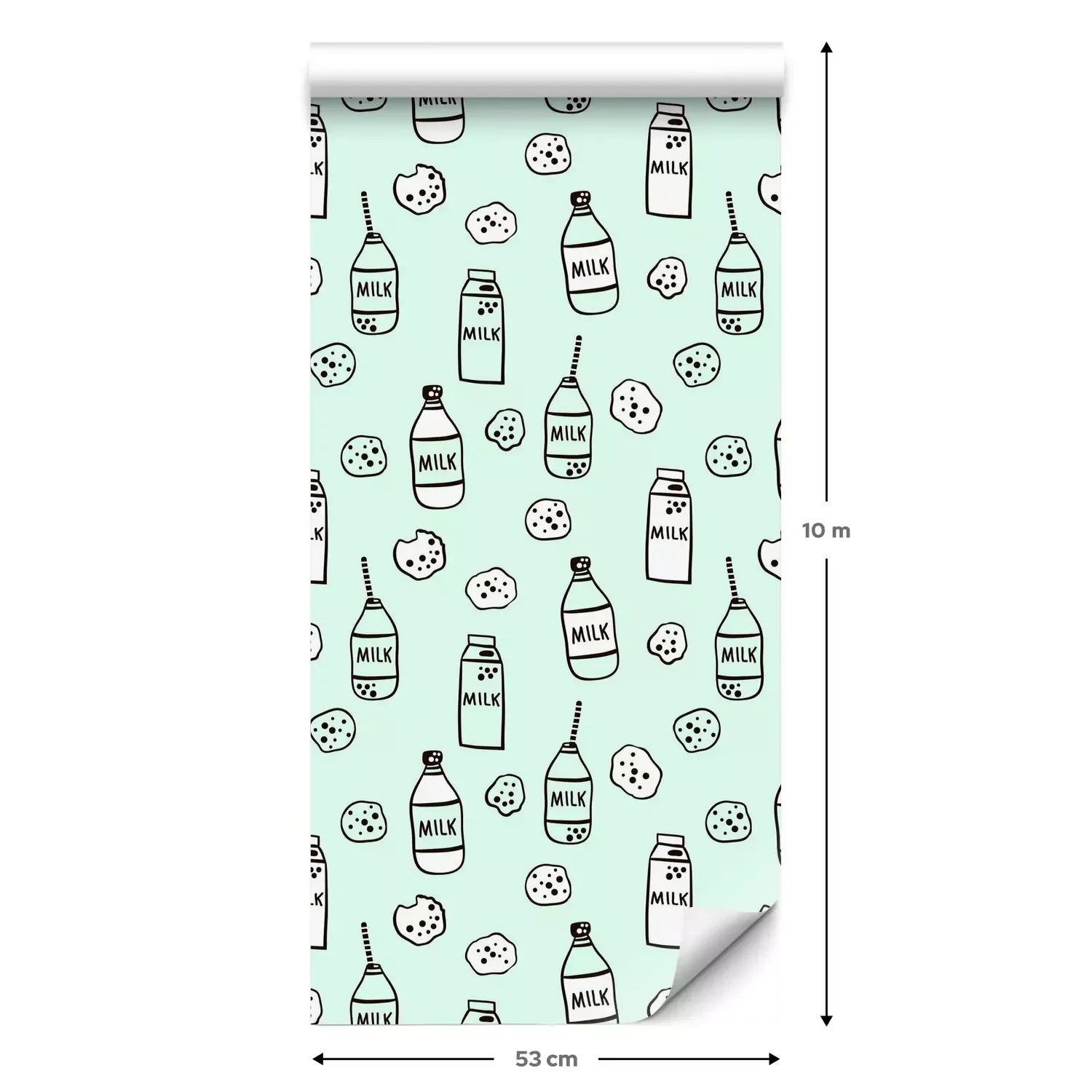 Eine Standard-Tapetenrolle hat die Maße 0,53 m x 10 m und deckt eine Wandfläche von etwa 5 m² ab.