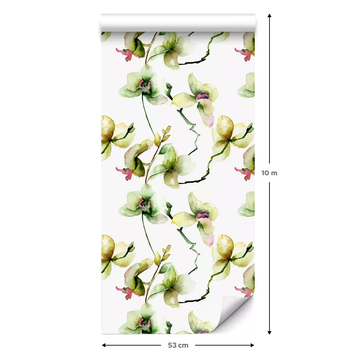 Eine Standard-Tapetenrolle hat die Maße 0,53 m x 10 m und deckt eine Wandfläche von etwa 5 m² ab.